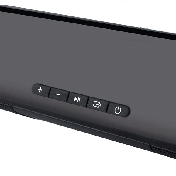 SŁUCHAWKI NAUSZNE Soundbar zapewnia lepszą jakość dźwięku w porównaniu ze smartfonem lub tabletem. Dwa stereofoniczne głośniki wysokotonowe o mocy 5 W i dwustronna tuba dźwiękowa zapewniają mocny, dobrze zbalansowany dźwięk. Łączność BT umożliwia bezprzewodowe przesyłanie strumieniowe muzyki z dowolnego urządzenia. Tak wszechstronny, że można go umieścić prawie wszędzie.Specyfikacja:Głośniki o mocy 10 W są idealne do pomieszczeń o wielkości 10㎡.Wbudowana antenaCzęstotliwość: 87,5 - 108Wymiary głośnika: 330 mm (szer.) * 50 mm (gł.) * 50 mm (wys.)Moc głośników: 4 Ω 5 W * 2Czas pracy: do 5 hCzas czuwania: 240 hCzas ładowania: 2-3 hWejścia: USB, karta TF, Jack 3,5mm, Micro USBObsługuje dysk USB / kartę TF / kabel jack 3,5 mm aux-in do odtwarzania muzyki.EAN: 027349W zestawie:SoundbarKabel ładowaniaKabel AUXInstrukcjaKOLOR MOŻE NIEZNACZNIE RÓŻNIĆ SIĘ OD TEGO NA ZDJĘCIACH!