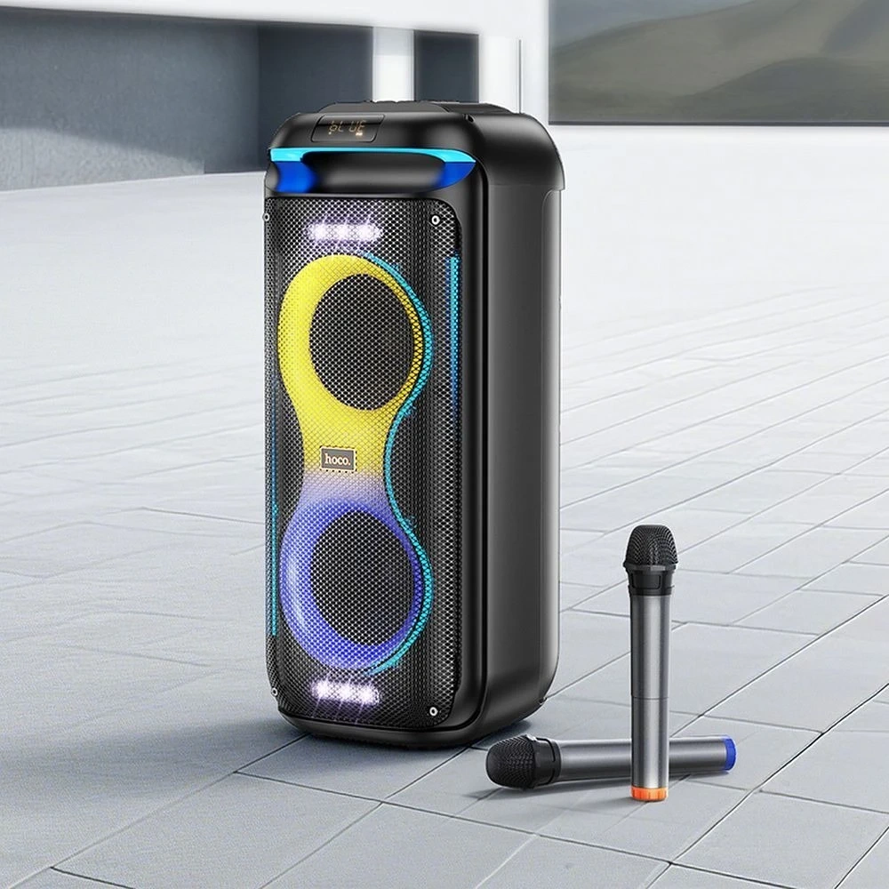 HOCO HA13 Pro zestaw karaoke 60 W, RGB LED, 2× mikrofony TWS, BT 5.4