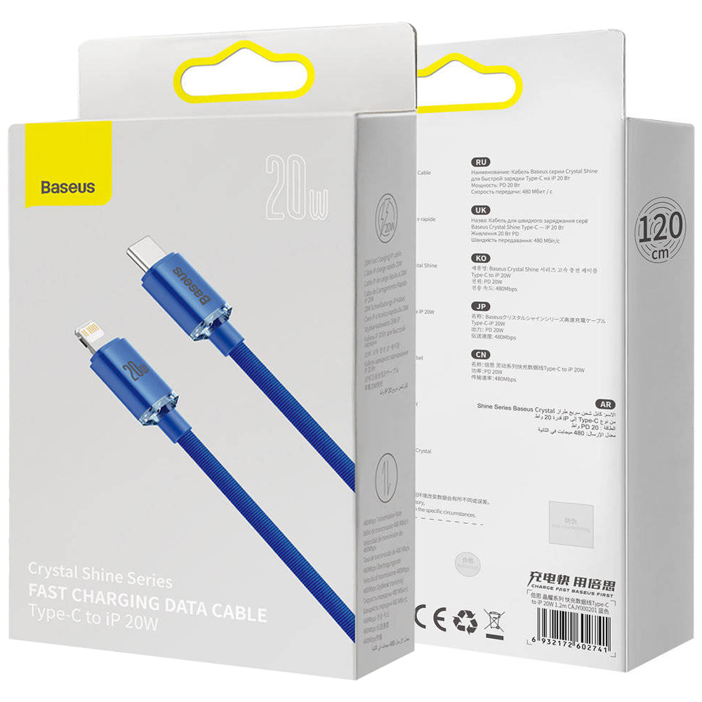 Kabel 1.2m Baseus Crystal Shine USB-C Type C do Lightning PD 20W Niebieski x 1
