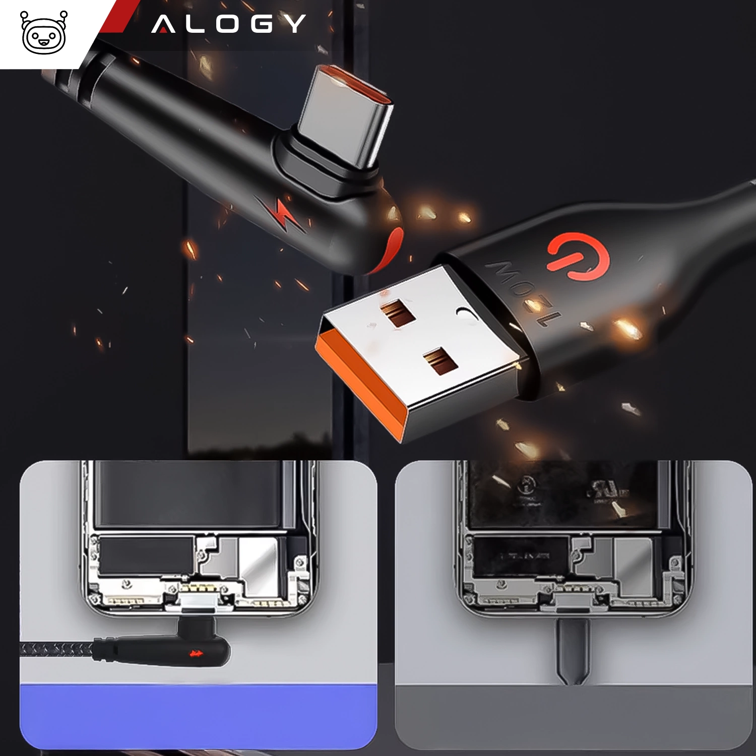 ✅ Ergonomiczny design – kabel marki Alogy posiada złącze USB-C pod kątem 90 stopni, co zapewnia komfortowe użytkowanie, szczególnie podczas oglądania filmów, grania w gry czy korzystania z telefonu w pozycji poziomej.