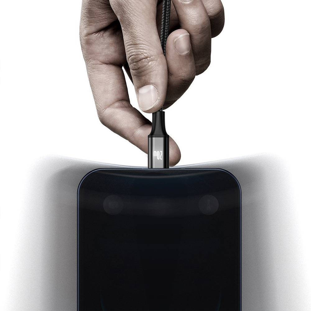 Kabel od marki Baseus z serii Rapid Series został stworzony z najwyższej jakości materiałów. Posiada port wejściowy USB-C Type C i aż 3 złącza wyjściowe: USB-C Type C, micro USB i Lightning. Obsługuje szybkie ładowanie 20W, dzięki czemu w krótkim czasie odnowimy baterię w urządzeniu.