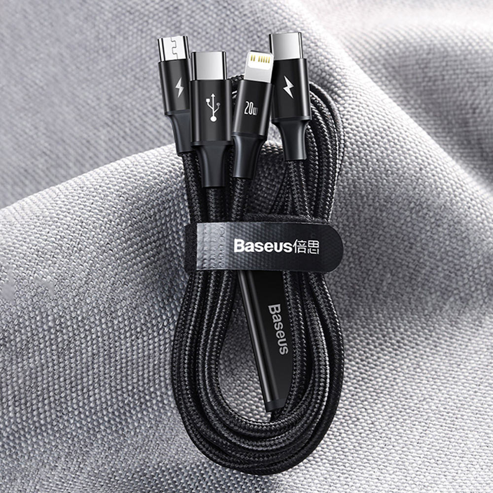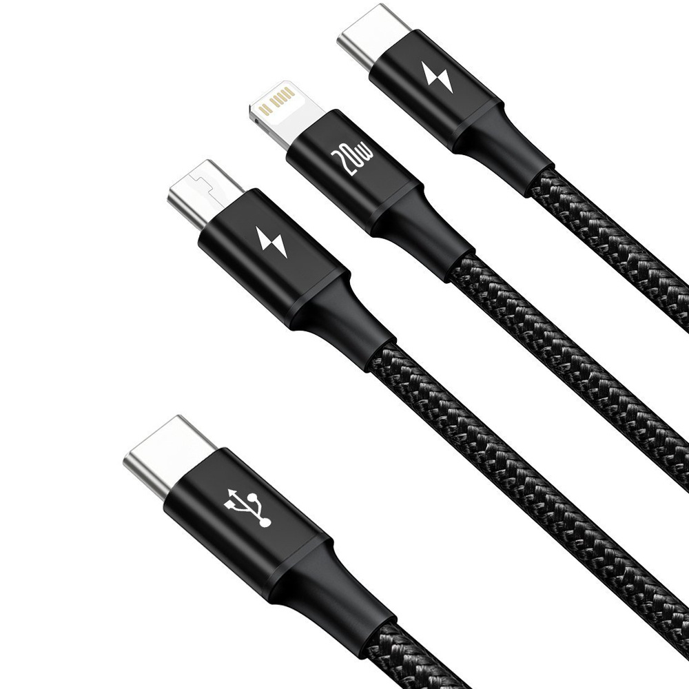 Kabel 3w1 Baseus Rapid Series USB-C do micro USB Lightning USB-C PD 20W 1.5m Czarny x 1