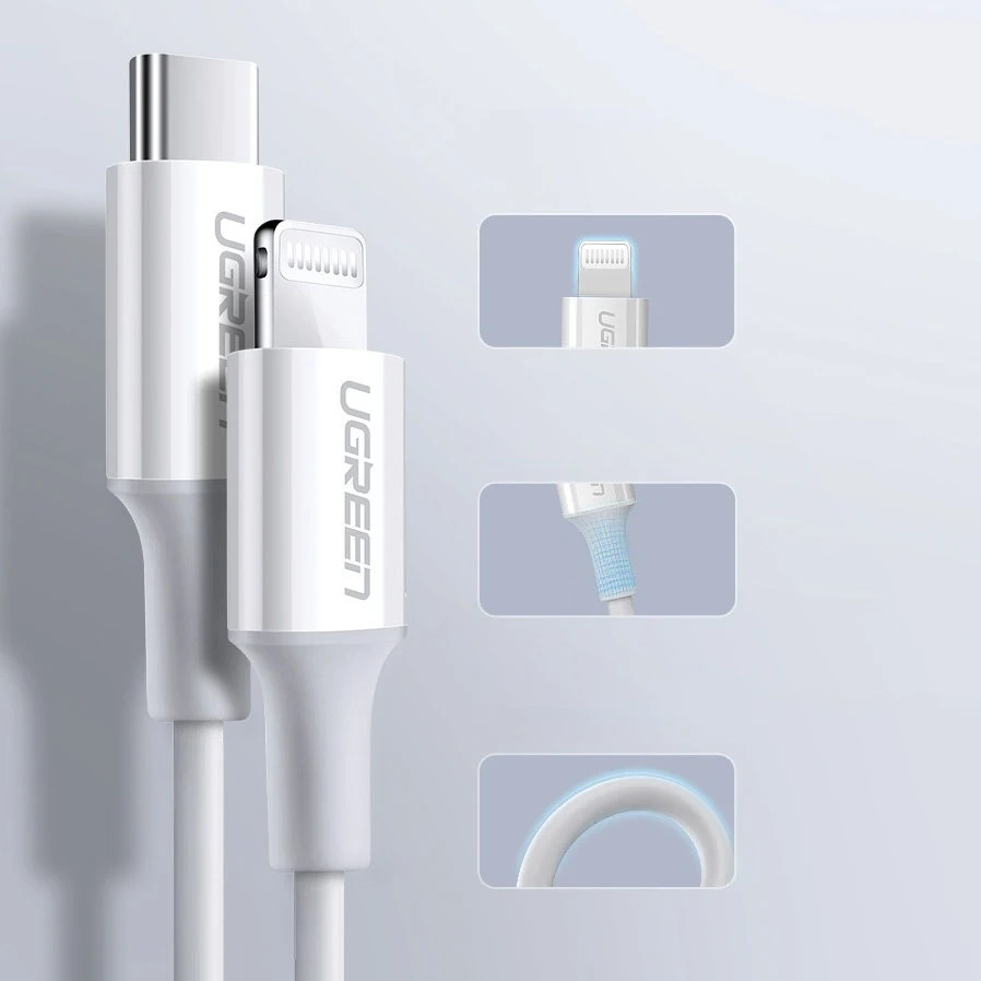 Kabel UGREEN przewód MFi USB Typ C - Lightning 3A 1.5 m biały (US171) x 1