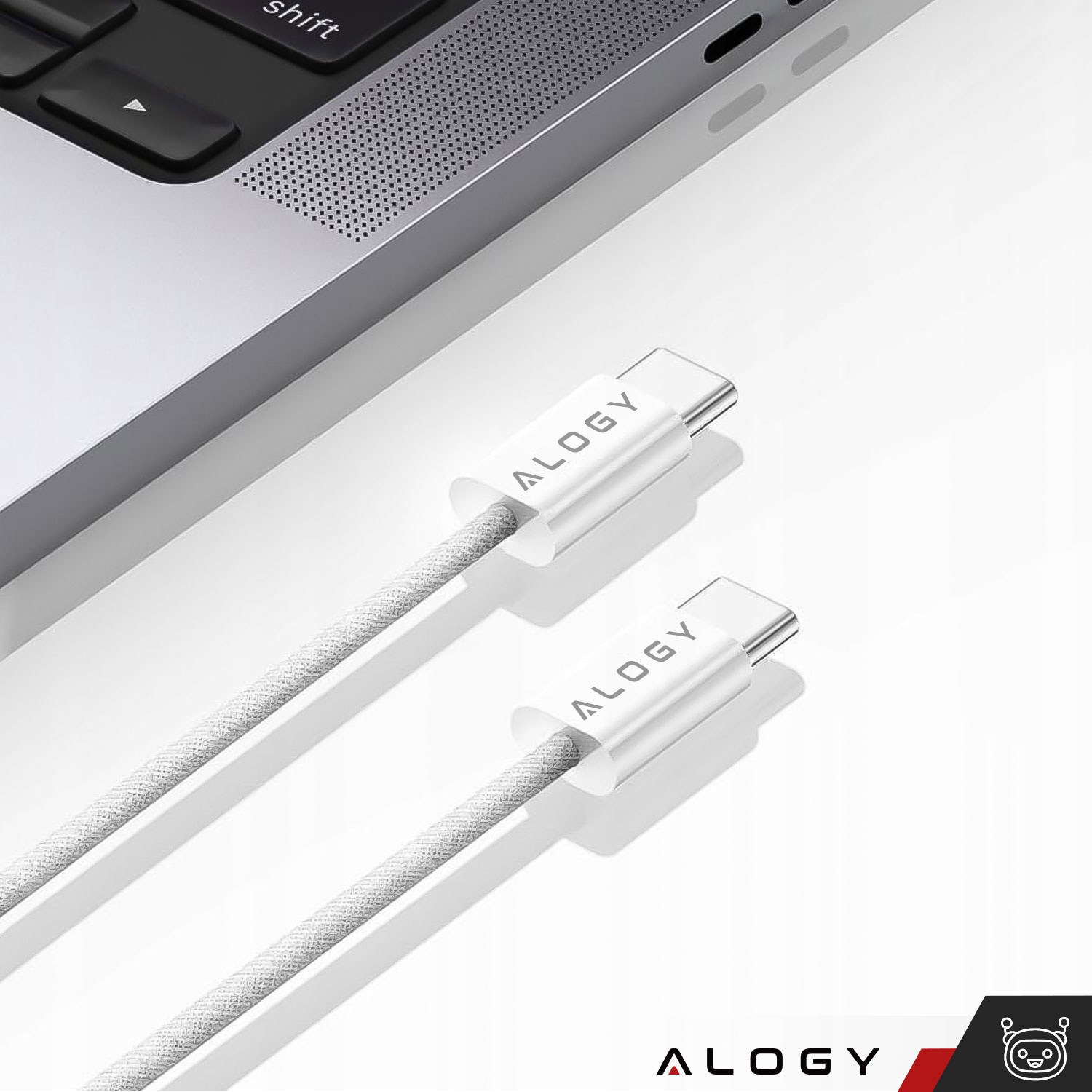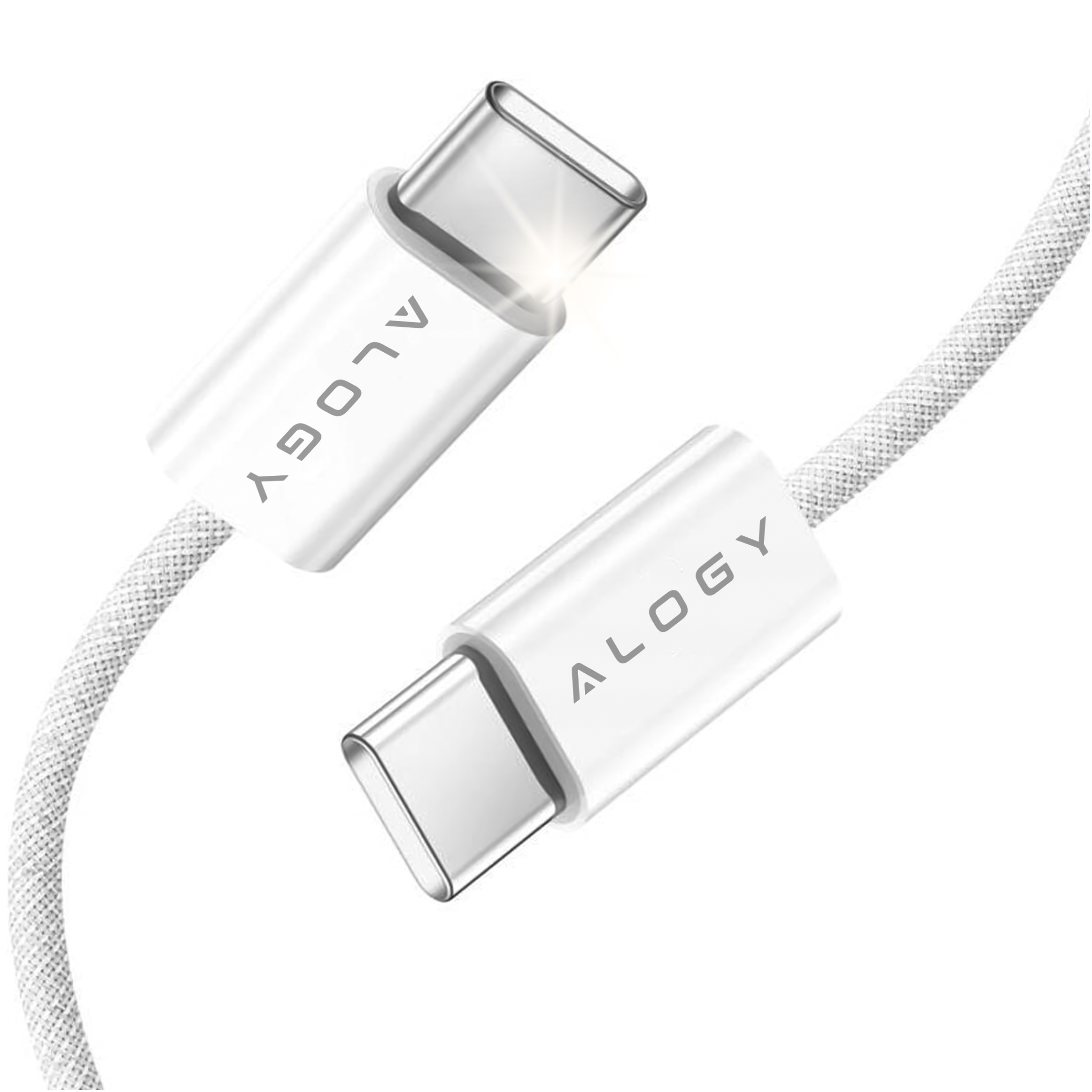 Kabel USB-C typ C mocny szybki PD 2M do iPhone 15 Alogy nylonowy przewód Biały x 1