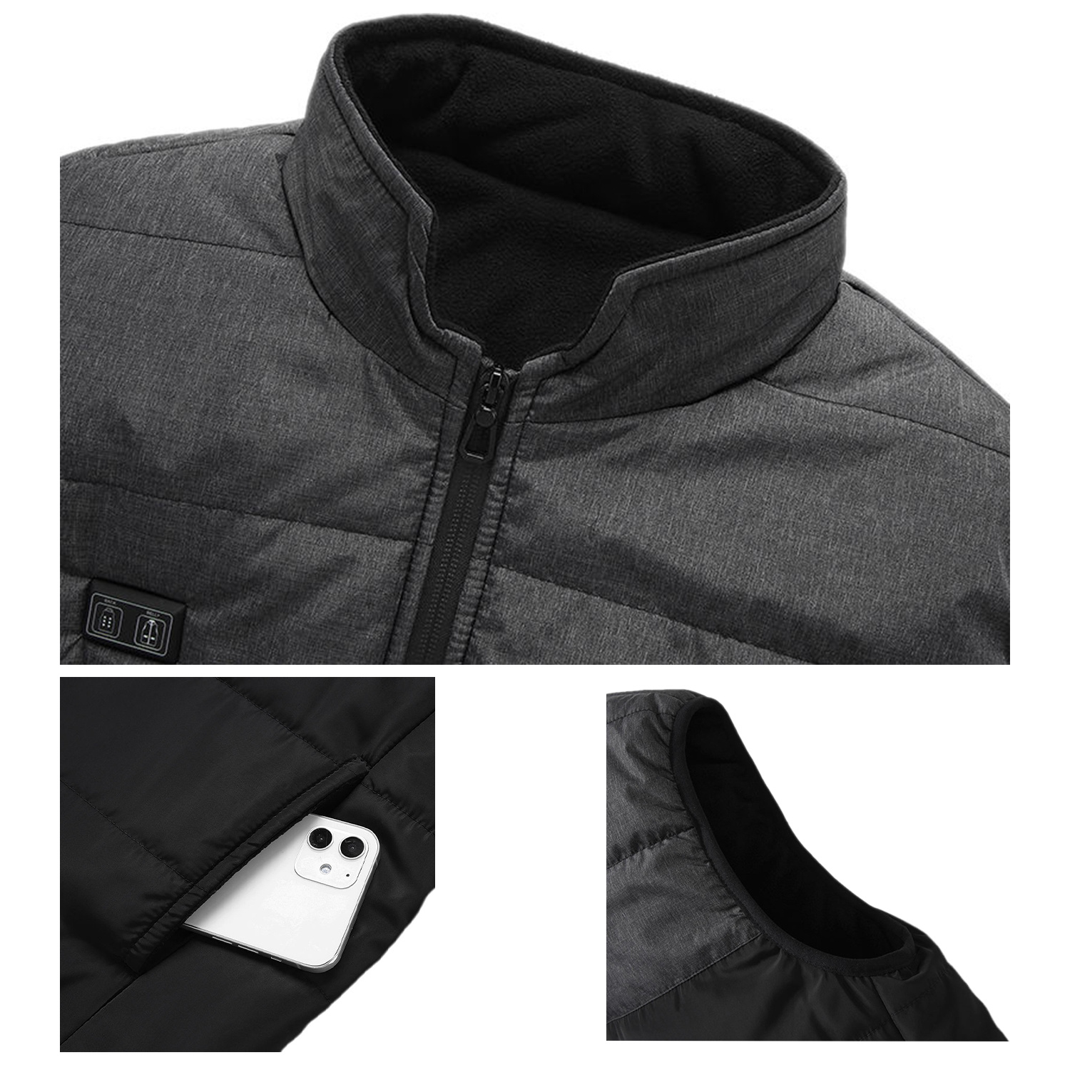 Kamizelka podgrzewana ogrzewana damska męska pikowana bezrękawnik kurtka elektryczna Unisex rozmiar L zimowa ciepła czarno-szara x 1