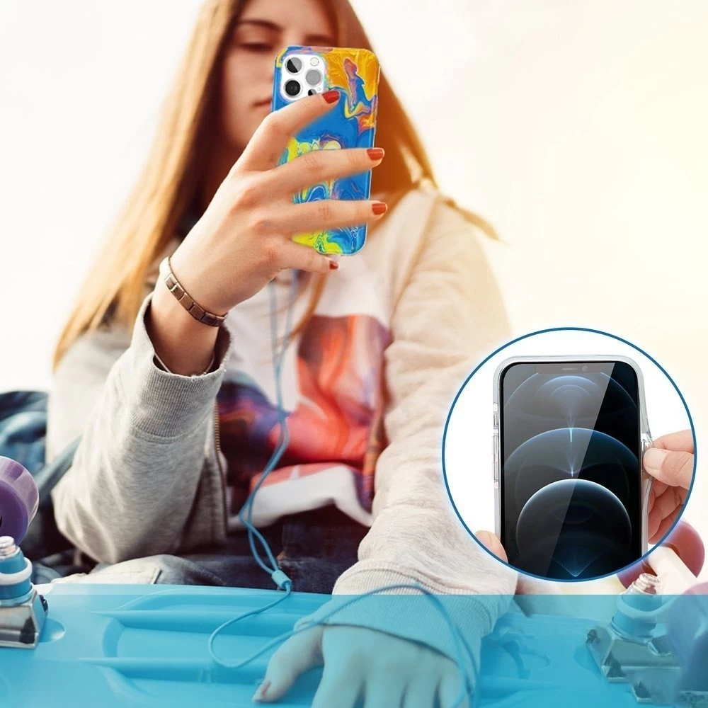 • Kingxbar Watercolour Series kolorowe etui do iPhone 12 Pro Max żółtoniebieski
