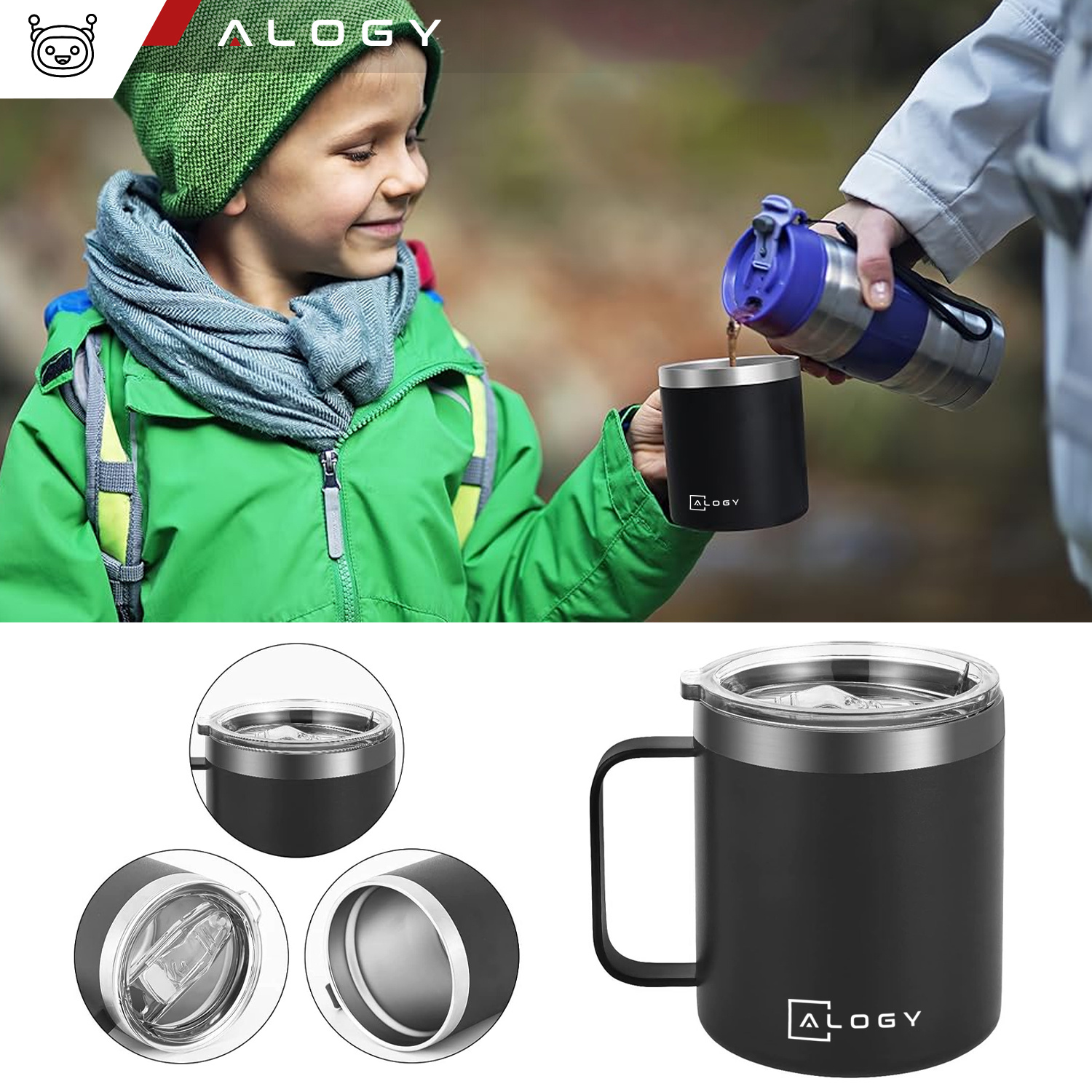 Kubki termiczne zestaw 2 kubków Kubek termiczny 420ml z uchwytem pokrywką na kawę herbatę stalowy Alogy Czarny x 1