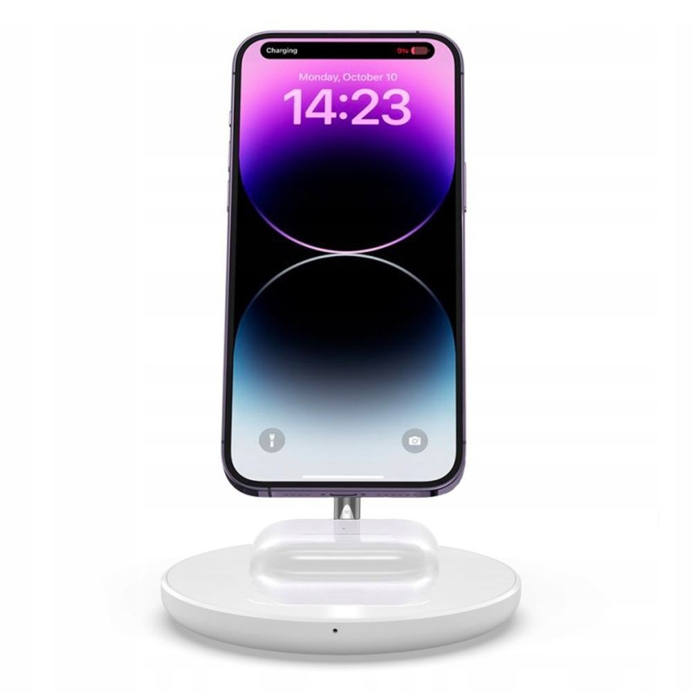 Stacja ładująca zapewni błyskawiczne odnowienie baterii w Twoich urządzeniach mobilnych. Za pomocą ładowania indukcyjnego QI naładujesz telefon z mocą maksymalną 15W lub słuchawkach bezprzewodowych Apple Airpods 3W. Funkcja magnetyczna MagSafe działa tylko i wyłącznie bezpośrednio do telefonu lub do etui z wbudowanym oczkiem magnetycznym o zastosowaniu MagSafe.