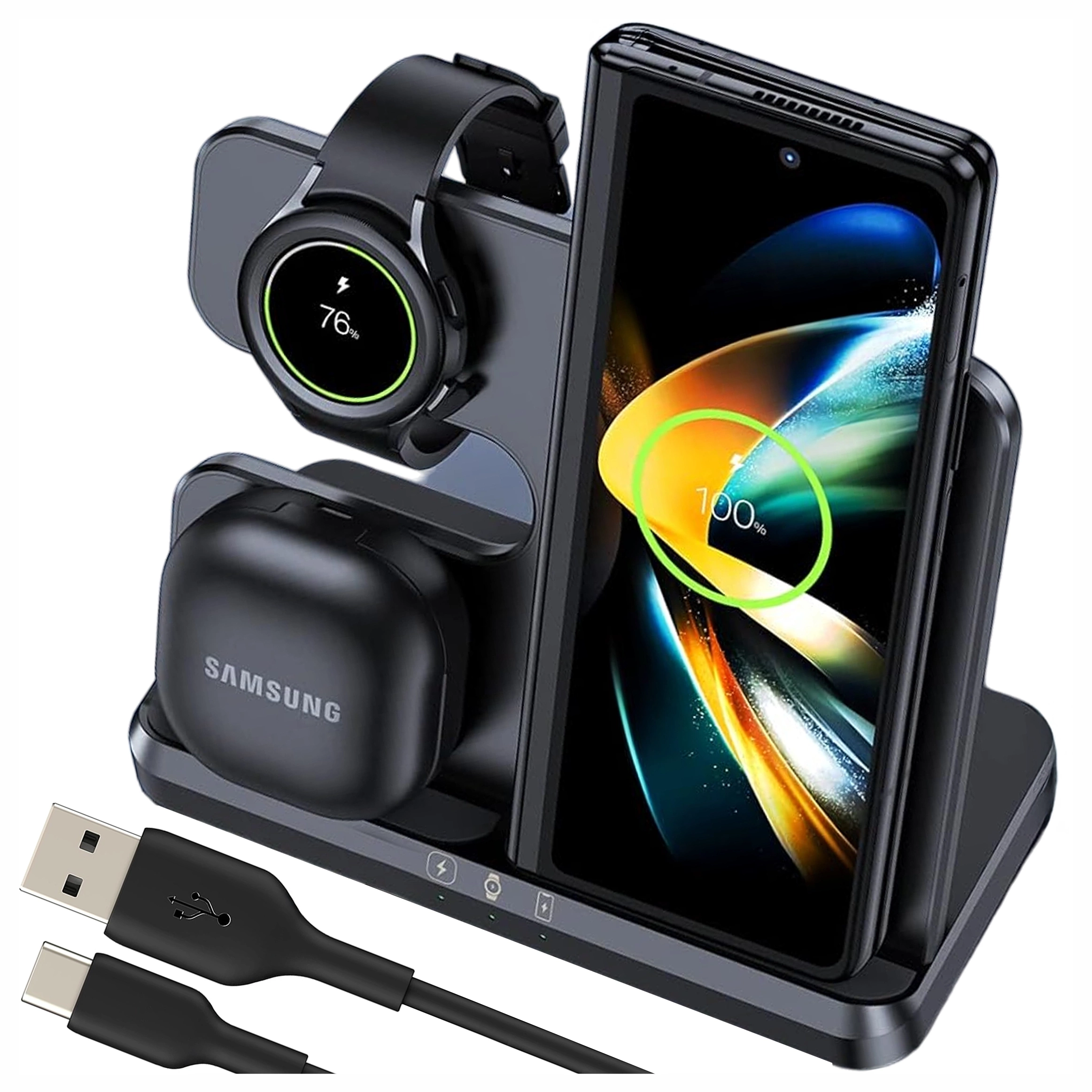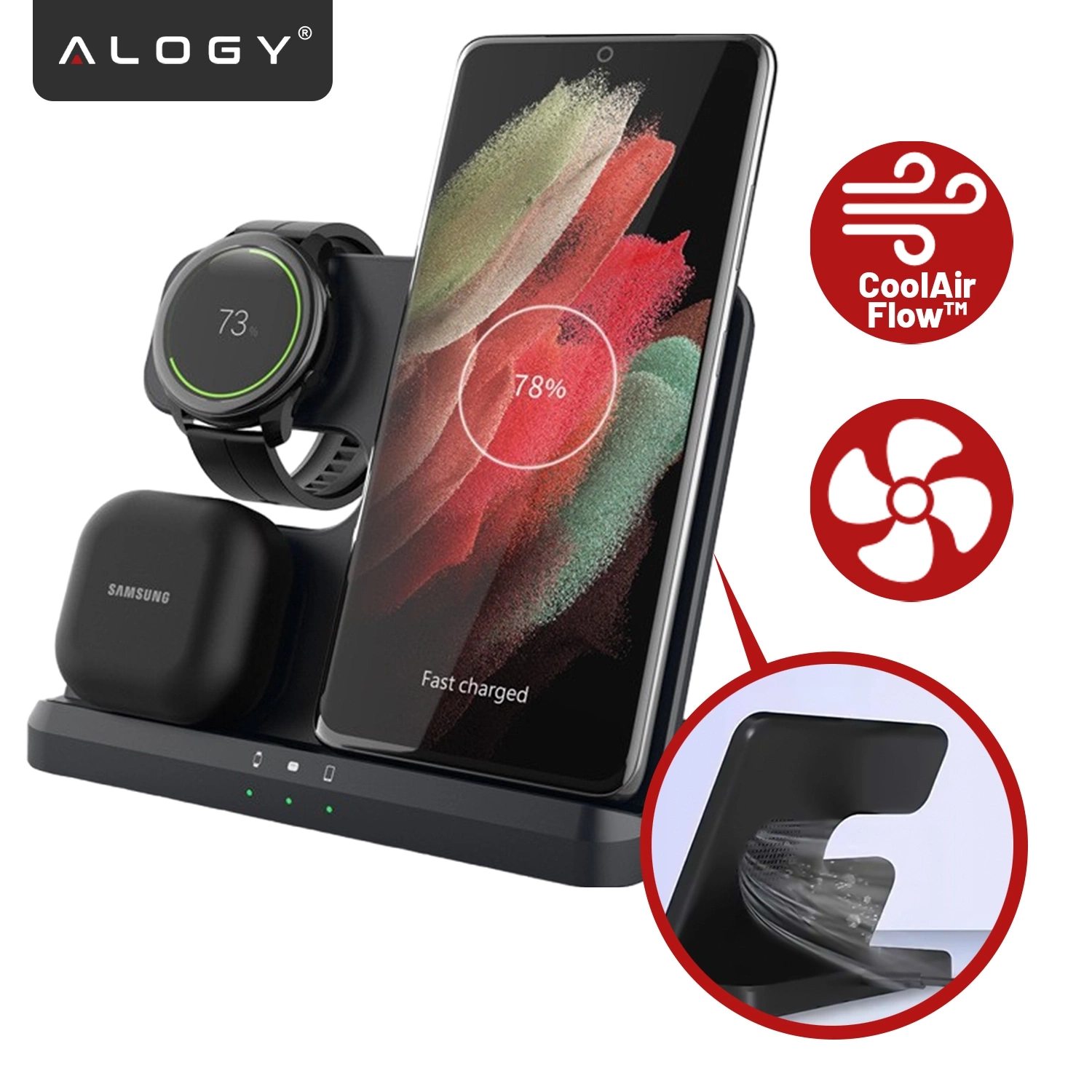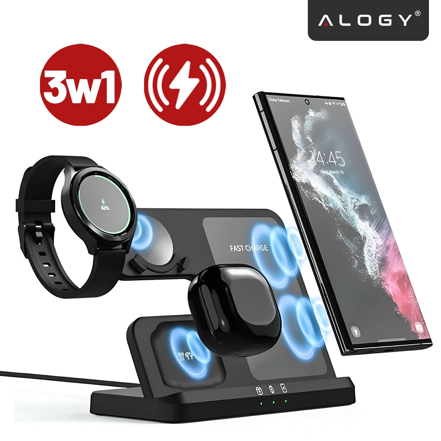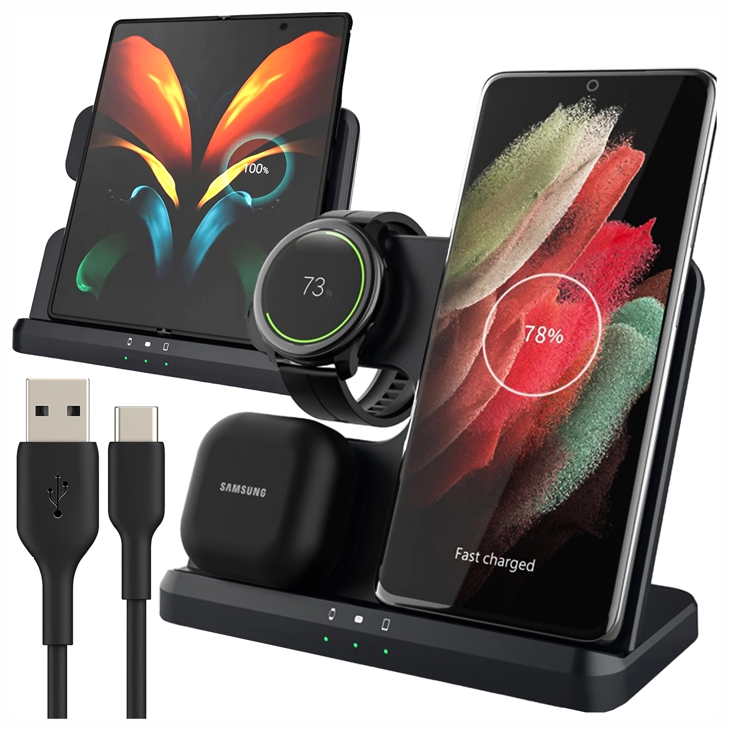 Ładowarka Bezprzewodowa Indukcyjna 3w1 Qi 3.0 Szybka do Samsung S22 S23 S24 S25 Galaxy Watch Buds Stacja czarna x 1