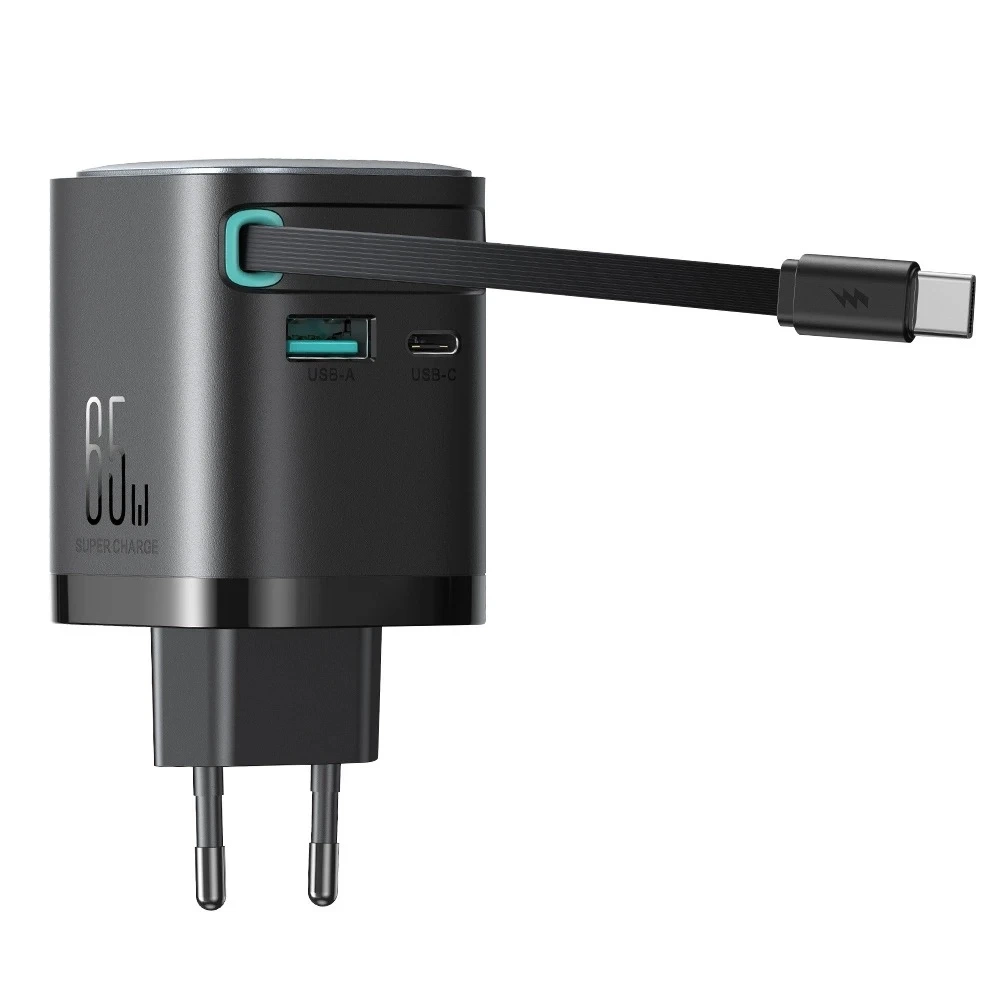 Ładowarka GaN Joyroom JR-TCL02 65W USB-A USB-C z wbudowanym kablem USB-C - Czarna x 1