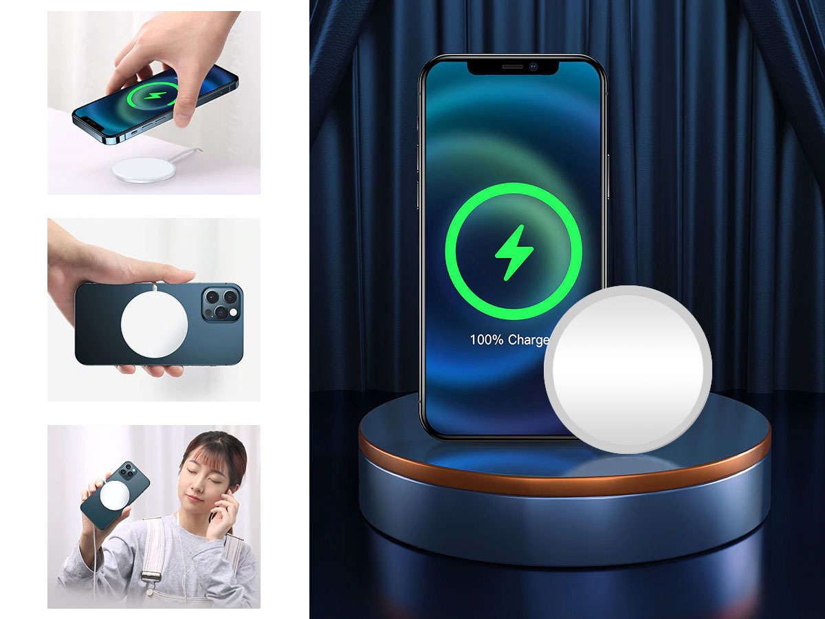 Ładowarka kompatybilna jest z najnowszymi smartfonami marki Apple: iPhone 12 mini, iPhone 12, iPhone 12 Pro, iPhone 12 Pro Max. Możesz korzystać z ładowarki również przy innych urządzeniach które obsługują ładowanie QI, bez konieczności magnetycznego umieszczania ładowarki (wystarczy położyć urządzenie na ładowarce).