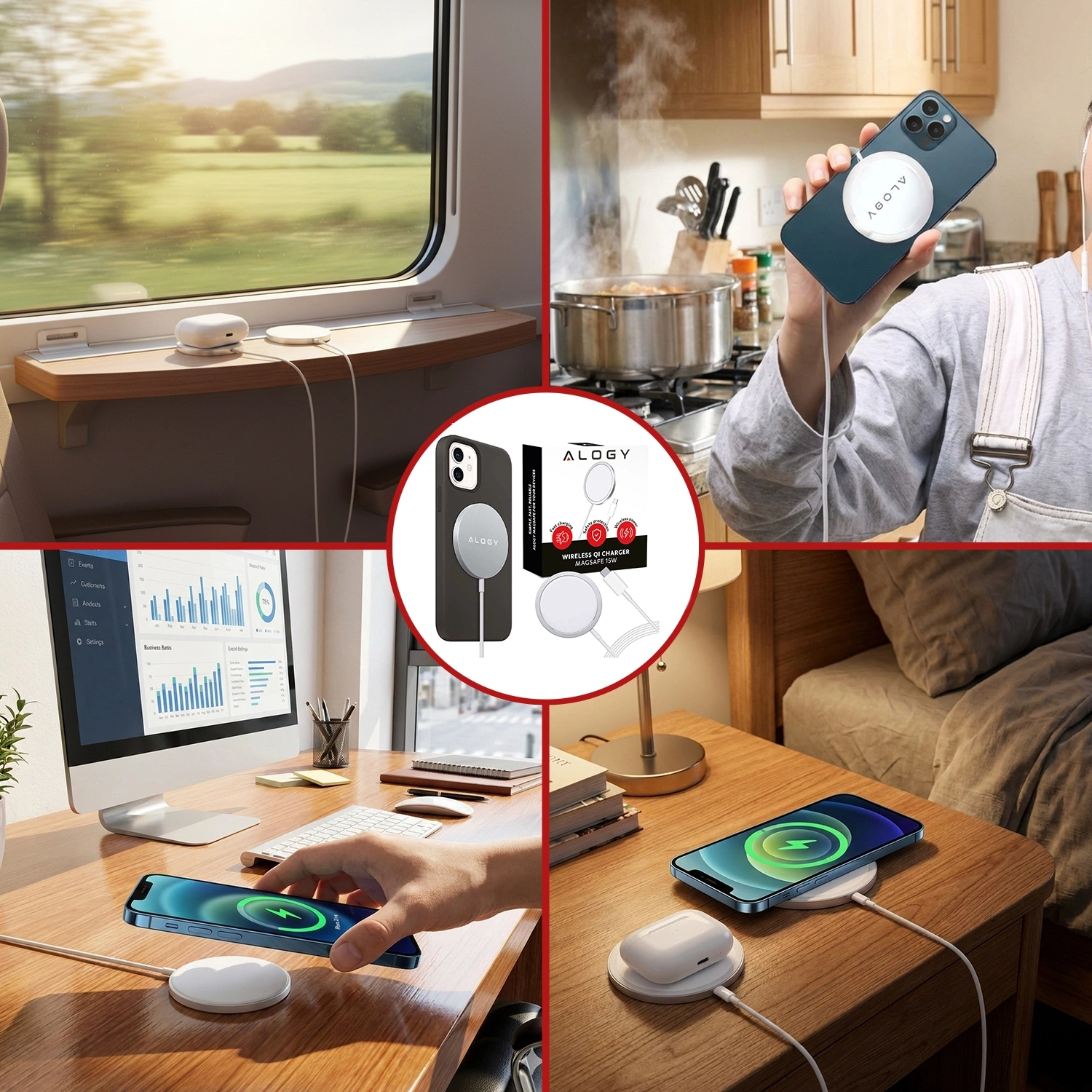⭐ Najnowszy model ⭐ Certyfikat CE, FCC i ROHS ⭐ Kompatybilność z urządzeniami Qi ⭐ MagHold™ - system MagSafe  ⭐ SafetyCore™ - ochrona przed przegrzaniem, przeładowaniem i spięciem ⭐ Standard USB-C ⭐ Błyskawiczne ładowanie 15W ⭐ Trwały materiał ABS ⭐ Slim Design ⭐10 lat doświadczenia w branży ⭐ ponad 50.000 zadowolonych klientów marki Alogy ⭐