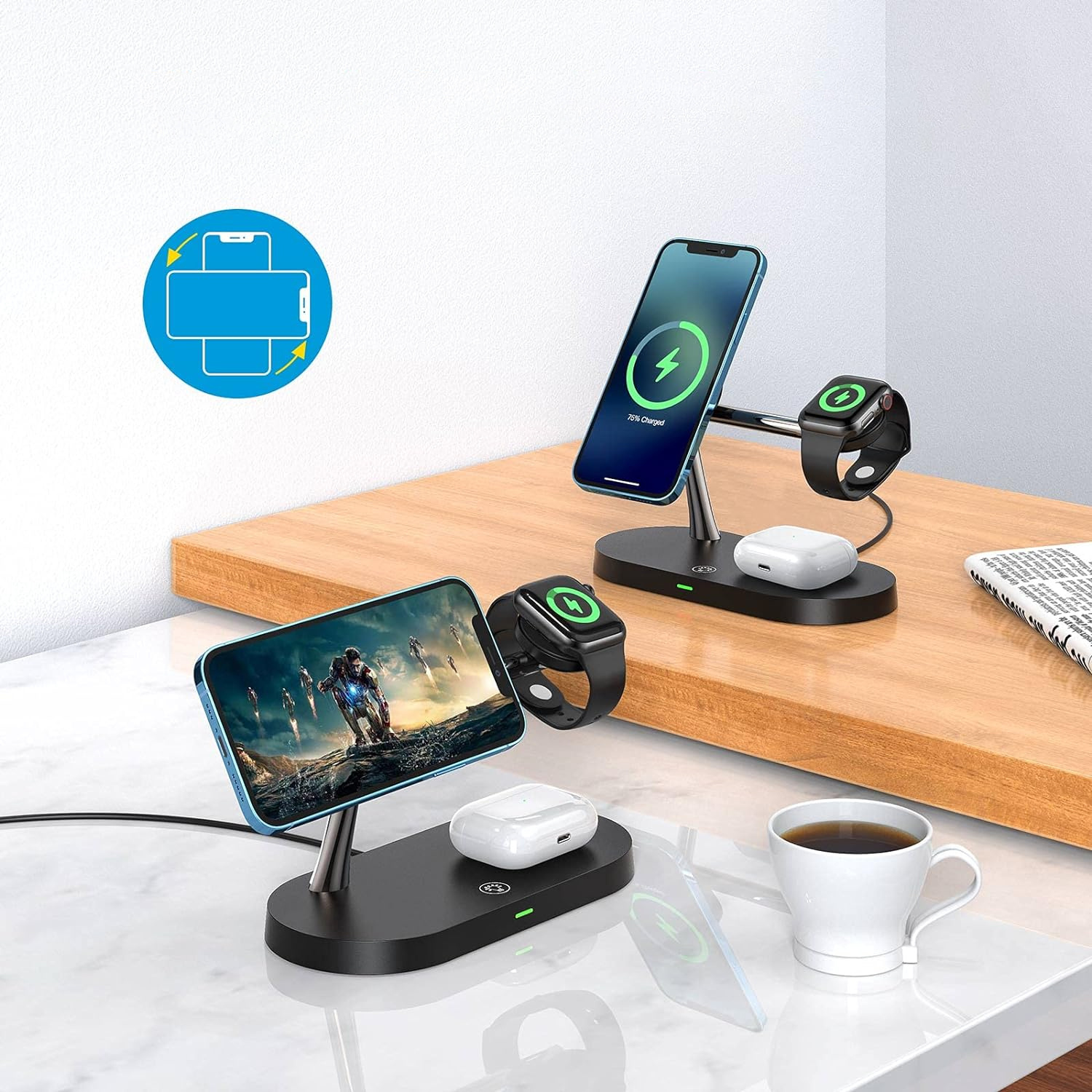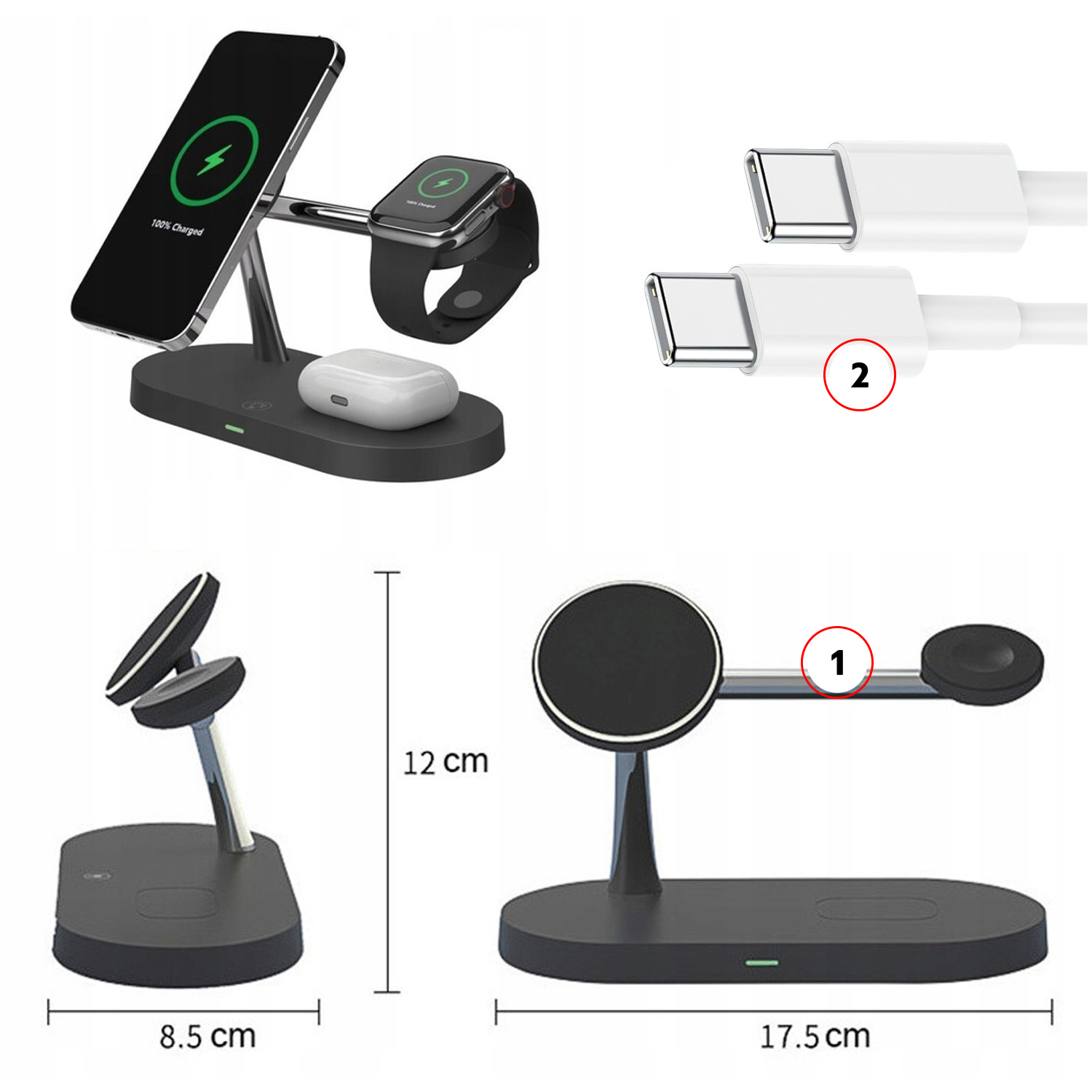 Ładowarka indukcyjna Qi Mag Safe 15W do iPhone Apple Watch AirPods bezprzewodowa 5w1 Stacja dokująca Czarna x 1