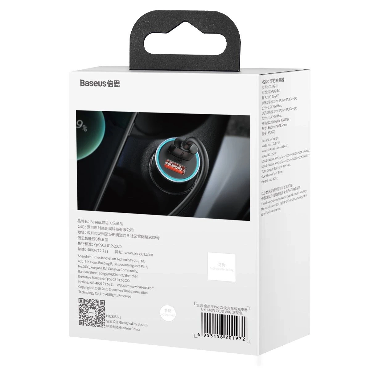 Ładowarka samochodowa Baseus Golden Contactor Pro, 2x USB, 40W (szara) x 1