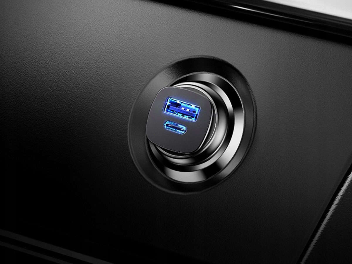 Ładowarka samochodowa firmy Baseus to kompaktowe urządzenie, które posiada wysoką moc ładowania. Wykonana została z najwyższej jakości aluminium oraz wyposażona jest w dwa uniwersalne porty: USB + USB-C Type-C, do których można podłączyć większość urządzeń mobilnych dostępnych na rynku, mi.in.: smartfon, nawigację czy urządzenie głośnomówiące.