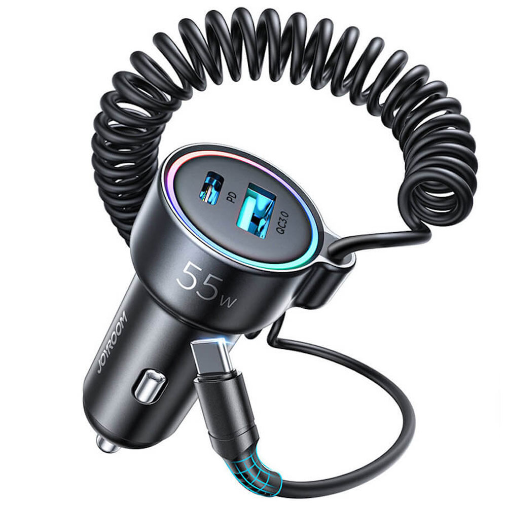 Ładowarka samochodowa Joyroom JR-CL07 3w1 z kablem USB-C Typ C 1.5m 55W czarny x 1