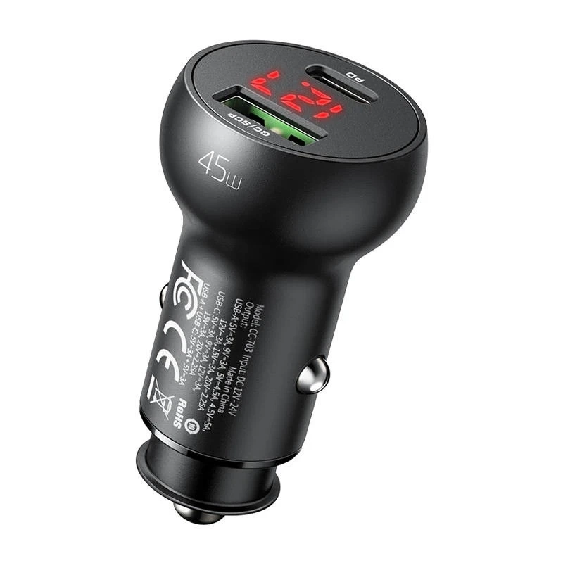 Producent Mcdodo Model CC-7030 Moc 45 W Wejście DC 12V-24V Wyjście: USB-A:5V⎓3A,9V⎓3A,12V⎓3A,15V⎓3A,20V⎓2.25A, 5V=4.5A (SCP), 4.5V=5A (SCP)