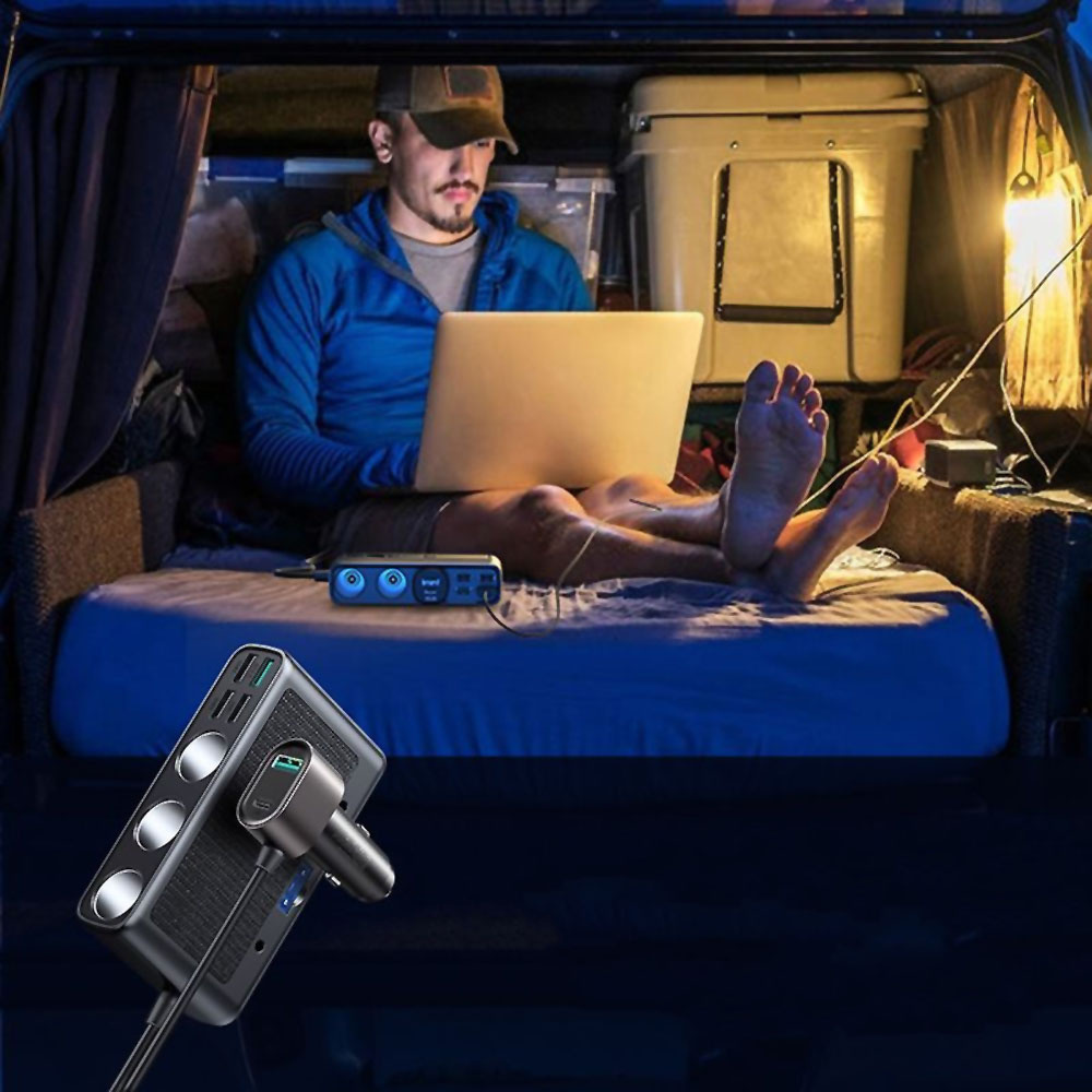 Ładowarka samochodowa z rozdzielaczem marki Joyroom to wysokiej jakości urządzenie pozwalające na ładowania aż 6 urządzeń jednocześnie, dzięki wbudowanym 5 portom USB i jednemu złączu USB-C Type C. Dodatkowo urządzenie posiada 3 gniazda na dodatkowe ładowarki samochodowe, dzięki któremu możemy rozszerzyć zakres działania.