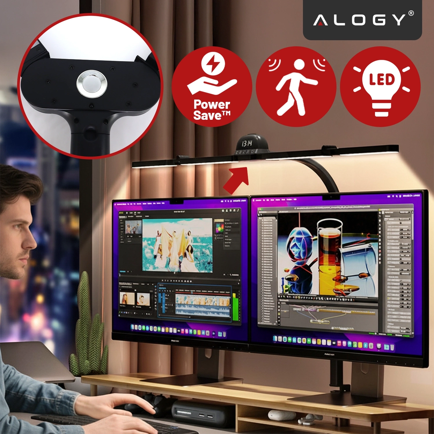 ✅ Włączasz lampę Alogy VisionBar™, a pokój wypełnia miękkie, równomierne światło, które dostosowuje się do Twojego rytmu dnia. Automatyczny czujnik ruchu PowerSaveMotion™ sam wykrywa Twoją obecność, oszczędzając energię, gdy odchodzisz od biurka. Dzięki pilotowi zdalnego sterowania zmieniasz temperaturę barwy w pięciu krokach — od ciepłej, relaksującej po chłodną, skupiającą uwagę. Wbudowany zegar, budzik i tryb nocny sprawiają, że to coś więcej niż lampa — to osobisty asystent codziennej produktywności. Nowoczesna, aluminiowa konstrukcja z matowym wykończeniem idealnie pasuje do wnętrz biurowych i gamingowych. Lampa Alogy to połączenie designu, technologii i komfortu widzenia, które poprawia koncentrację i chroni Twój wzrok.