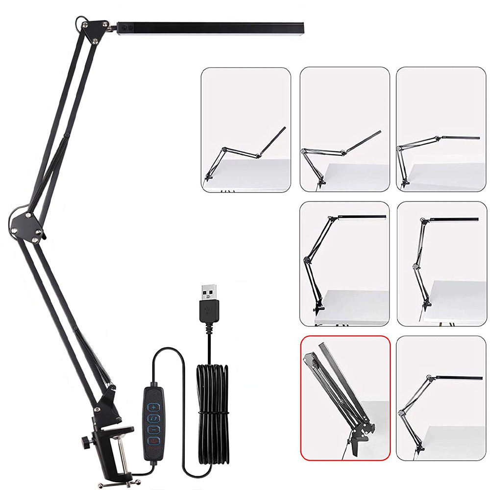 Lampa lampka biurkowa LED Kreślarska USB Alogy z regulowanym długim ramieniem do blatu biurka Czarna x 1