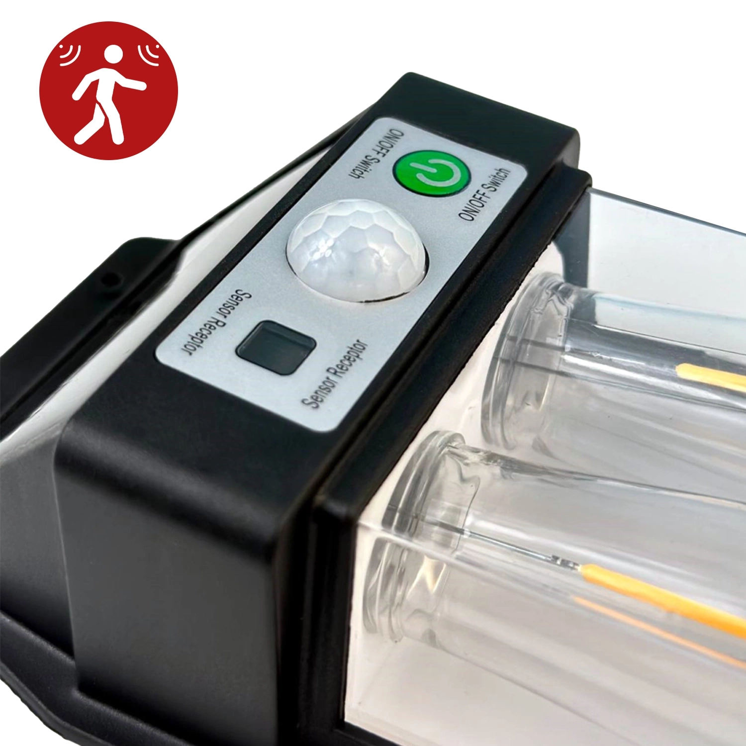 Lampa Solarna elewacyjna Kinkiet LED 60 na ścianę domu ogrodowa Barwa Ciepła 2 żarówki Czarna
