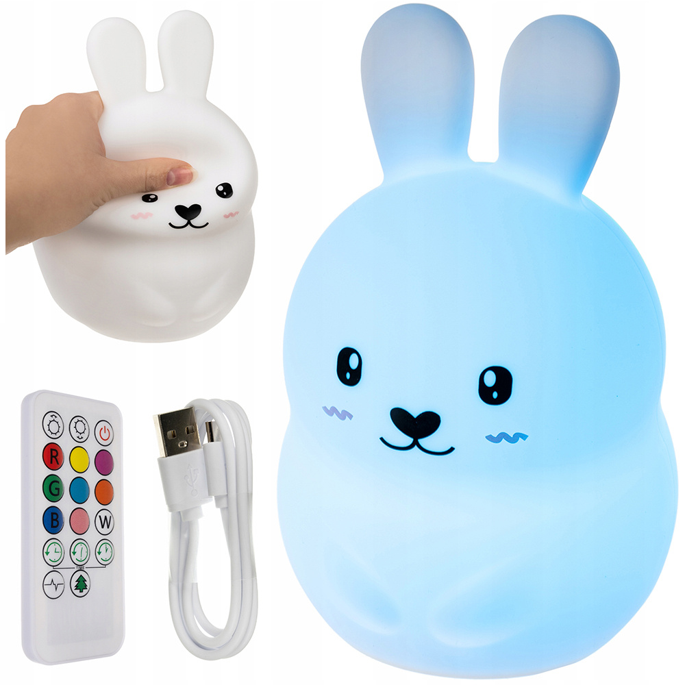 Lampka nocna LED silikonowa dla dzieci 9 kolorów Lampa Króliczek królik + pilot x 1