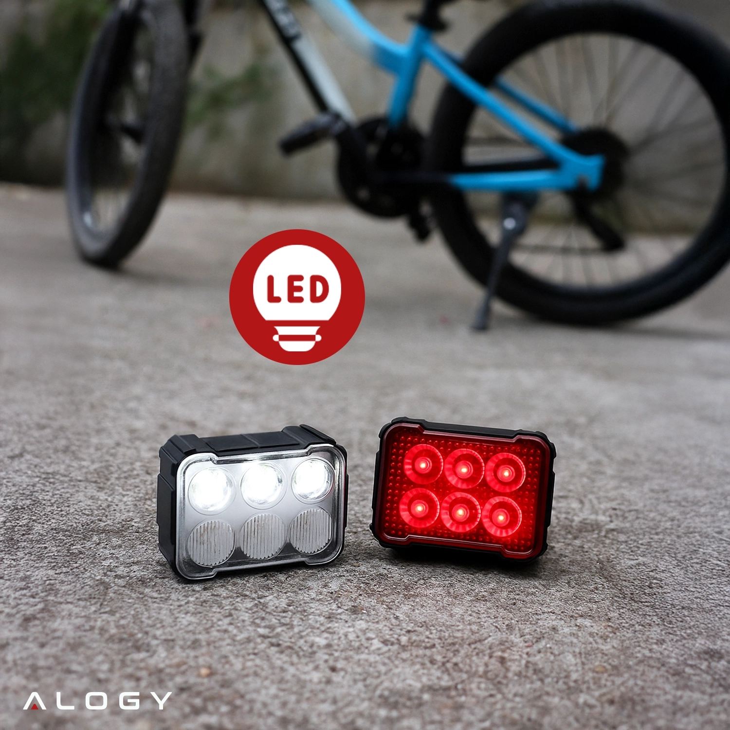 Lampka rowerowa LED Alogy SafeRide™ Lights Latarka na rower wodoodporne światło światełko na przód i tył przednia tylna 2 sztuki x 1