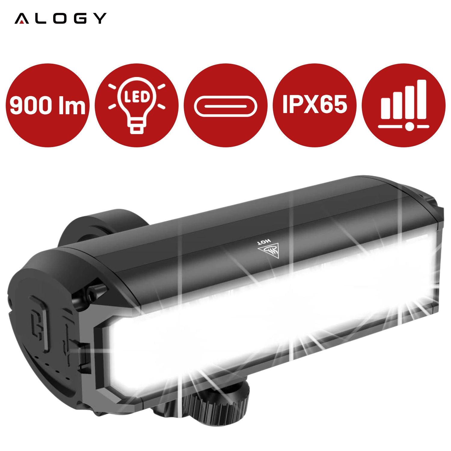 ▶️ Alogy FrontBike Light 610™ – Przednia lampka rowerowa LED 900 lm, 4 tryby, USB-C, IPX65