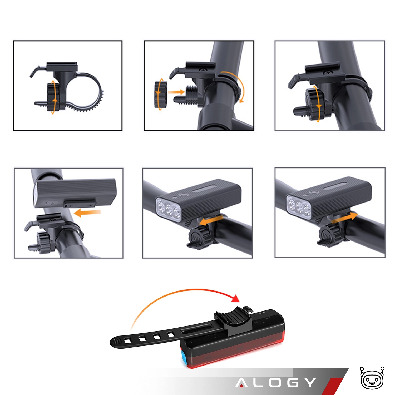 Lampka rowerowa przód + tył LED przednia tylna światło roweru oświetlenie wodoodporna IPX5 USB światełko na rower Alogy x 1