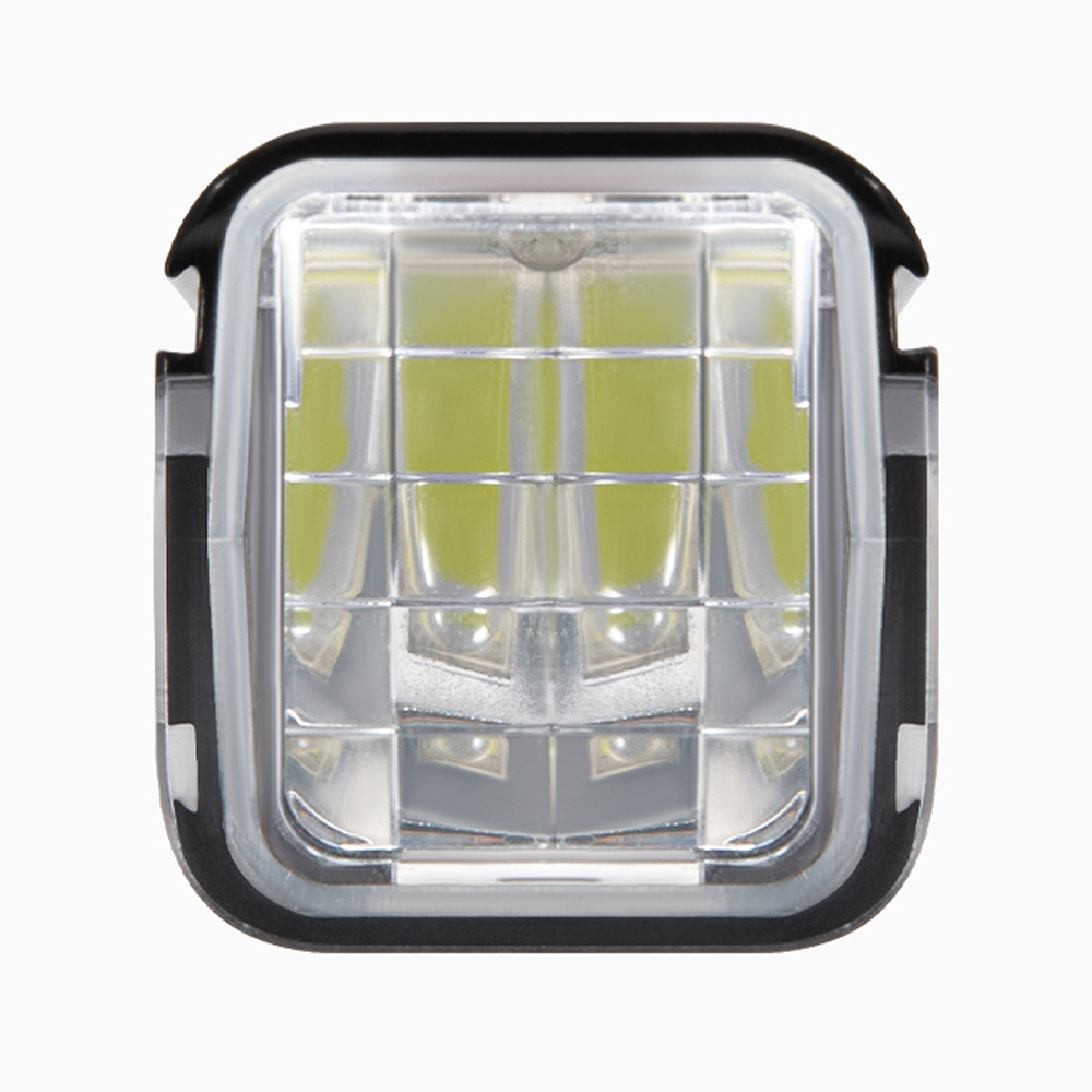 Latarka została skonstruowana tak, aby soczewka nie oślepiła zbliżających się z na przeciwka innych rowerzystów lub pieszych.
