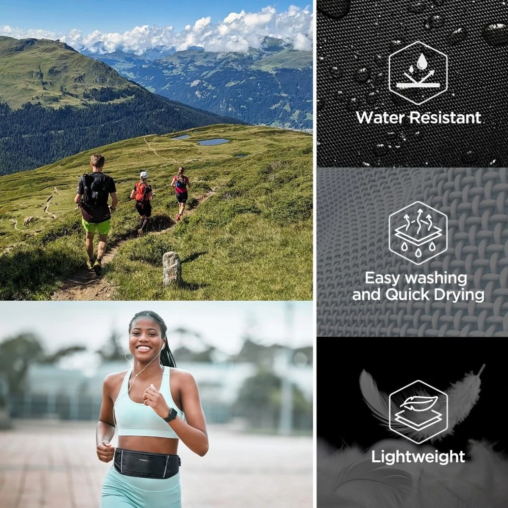 Posiada dwie kieszonki, które umożliwiają przechowywanie zarówno telefonu o maksymalnym rozmiarze 6.9 cala, jak i drobnych przedmiotów takich jak klucze, słuchawki czy karta kredytowa. Lekka konstrukcja oraz regulacja paska w zakresie od 25 do 40 cm sprawiają, że opaska doskonale dopasowuje się do każdego ramienia, nie krępując ruchów.