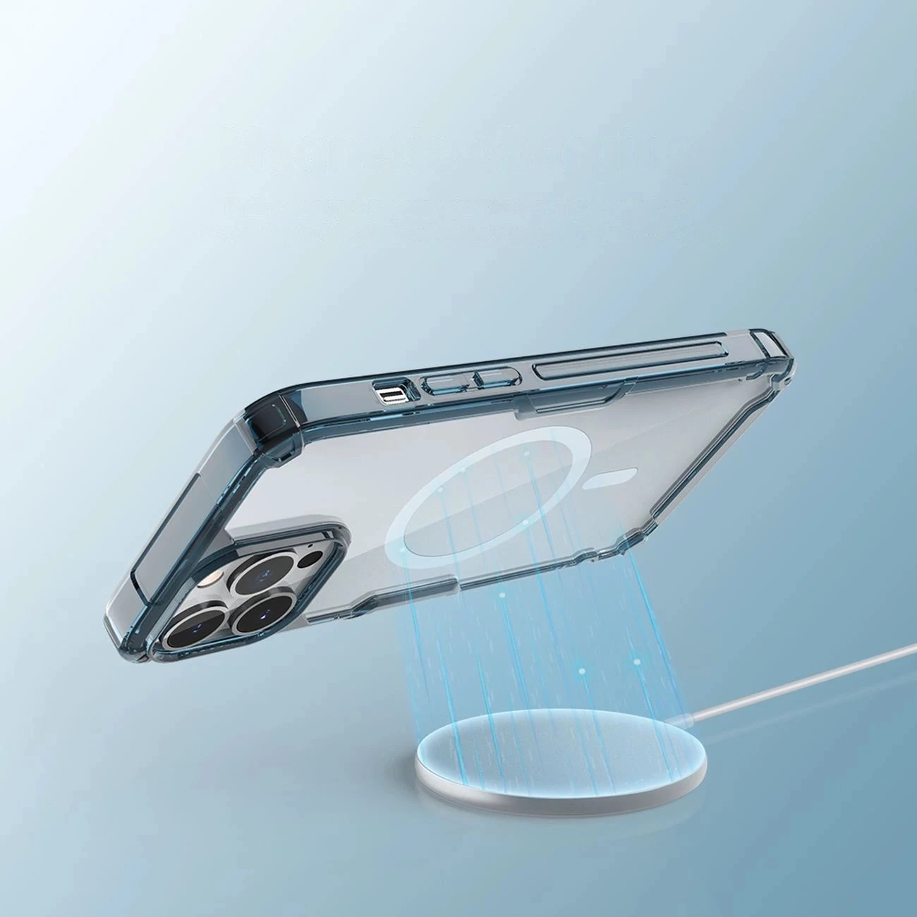Odporne na uszkodzenia etui z MagSafe. Wykonane z TPU oraz PC zapewnia pełną ochronę przed rysami czy pęknięciami. Case ma też zwiększoną odporność na uderzenia dzięki zastosowaniu poduszek powietrznych w narożnikach. Etui nie "zbiera" odcisków palców i tłustych plam ani nie żółknie wraz z upływem czasu.
