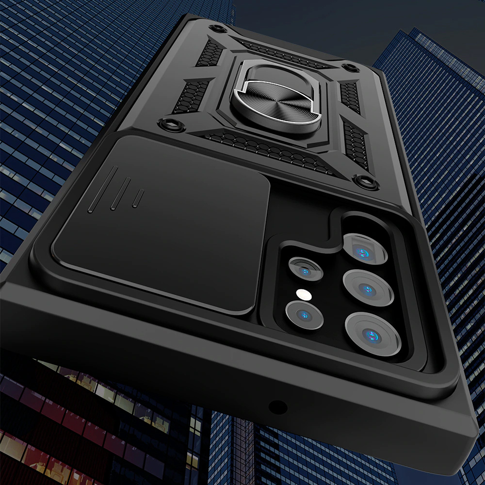 Pancerne etui z osłoną aparatu Alogy Camshield Stand Ring do Samsung Galaxy S22 Ultra czarne x 1