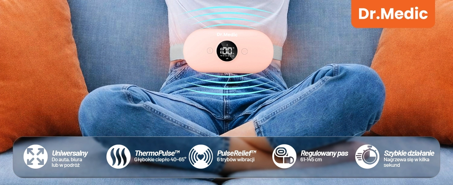 ✅ Dr.Medic ThermoPulse™ to nowoczesny pas grzewczy z masażem, zaprojektowany specjalnie dla kobiet zmagających się z bólem menstruacyjnym oraz napięciem w dolnych partiach pleców. Dzięki 6 poziomom temperatury (40–65°C) oraz 6 trybom wibracji, możesz precyzyjnie dopasować działanie do swoich potrzeb – delikatnie lub intensywnie, dokładnie wtedy, gdy tego potrzebujesz.
