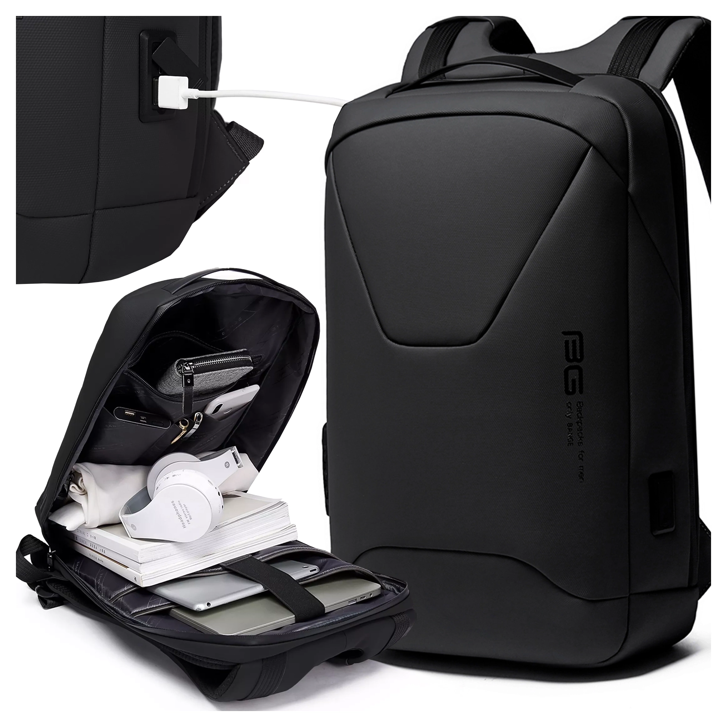 Plecak Antykradzieżowy wodoodporny Bange na laptopa 15.6" miejski podróżny 46x30x15 cm do pracy samolotu męski damski z gniazdem USB i zamkiem szyfrowym Czarny x 1
