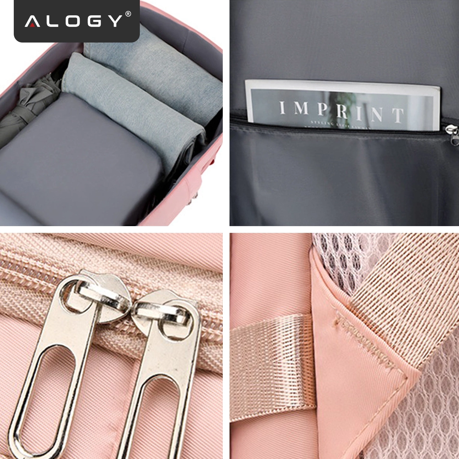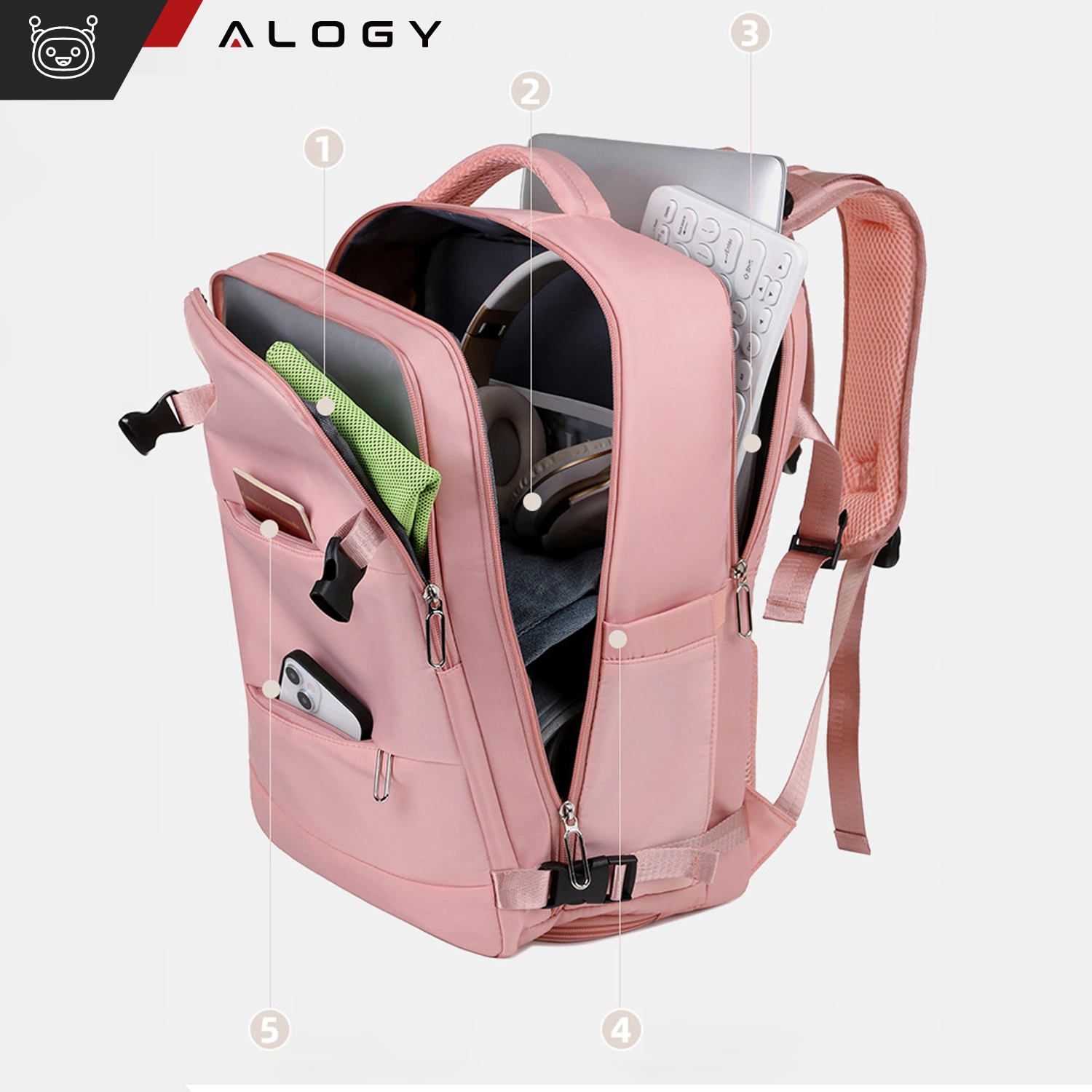 Plecak podróżny do samolotu Bagaż do SAMOLOTU 45x30x20 Wizzair Rayanair pracy szkoły Alogy Różowy x 1