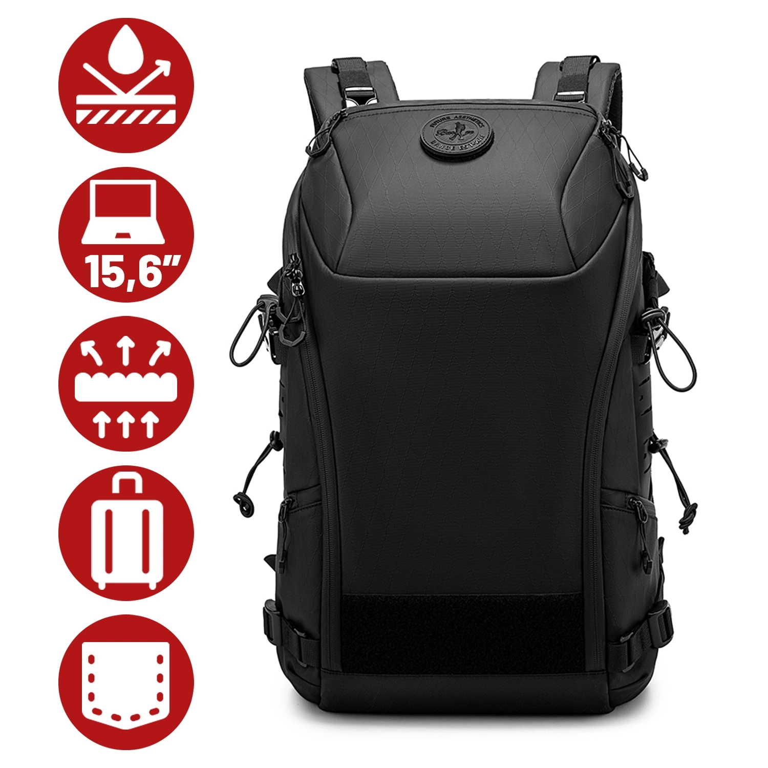 Plecak wodoodporny Bange 22L na laptopy do 15.6" – pojemny i wygodny, odporny i oddychający, miejski i podróżny do pracy i samolotu, unisex – Czarny x 1