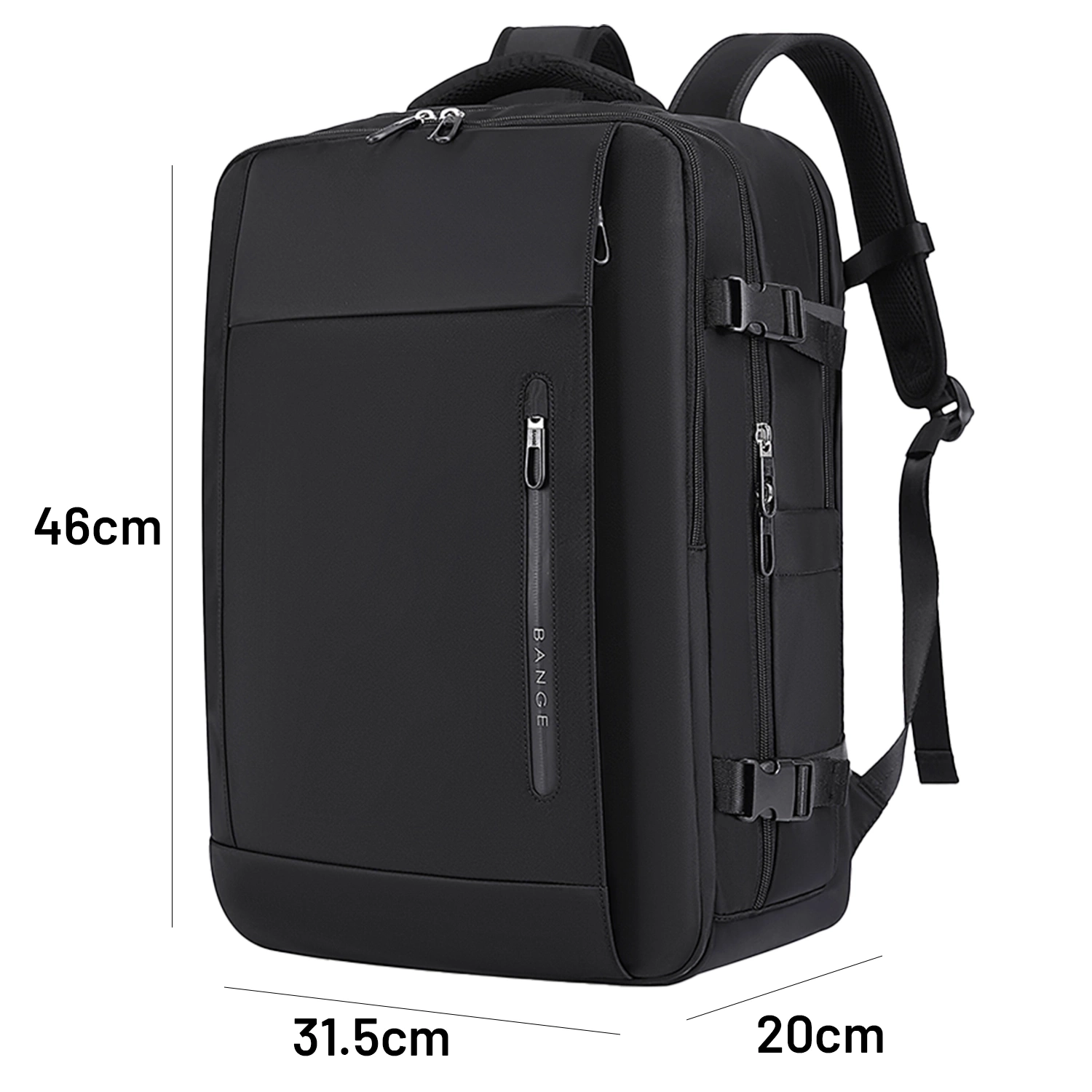 Plecak wodoodporny Bange na laptopa 15.6" miejski podróżny 46x31.5x20 cm do pracy samolotu męski damski z z gniazdem USB Czarny x 1