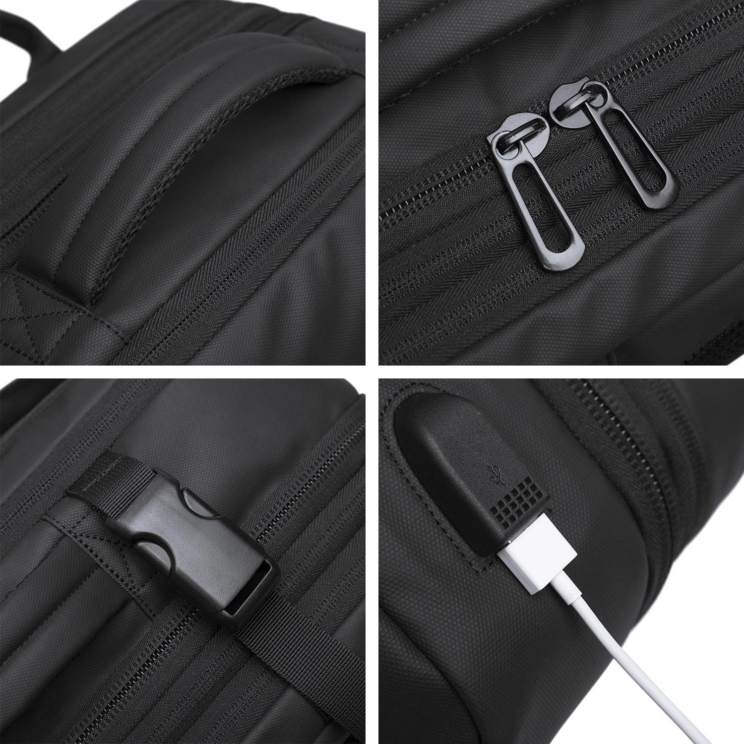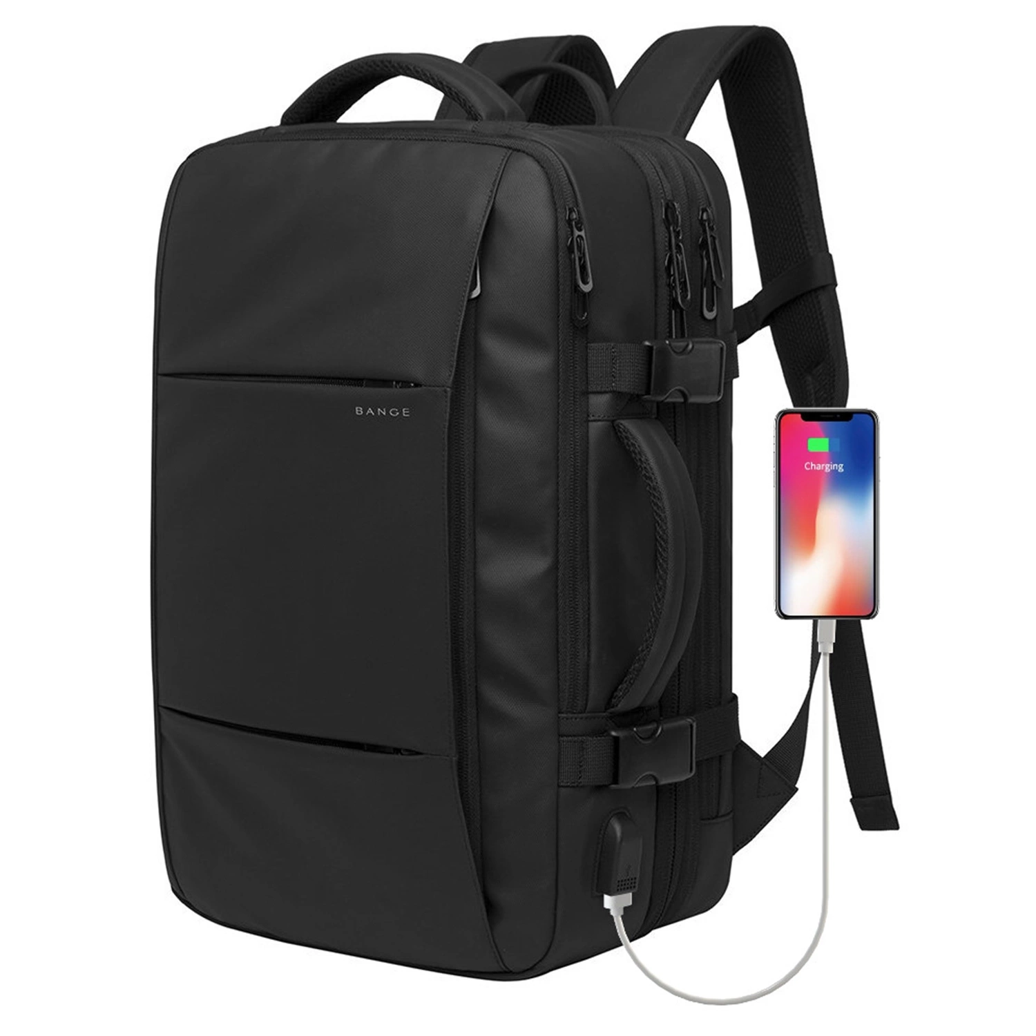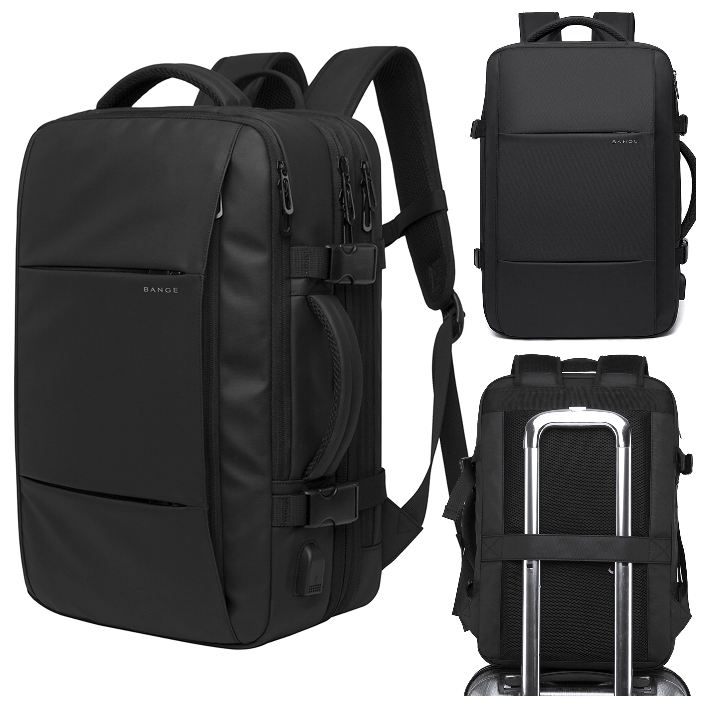 Plecak wodoodporny Bange na laptopa 15.6" miejski podróżny 47x31x15-25 cm do pracy samolotu męski damski z portem USB Czarny x 1