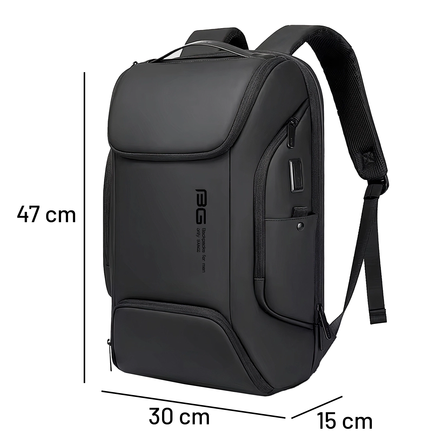Plecak wodoodporny Bange torba na laptopa 15.6" miejski podróżny 47x30x15 cm do pracy szkoły samolotu męski damski z gniazdem USB Czarny x 1