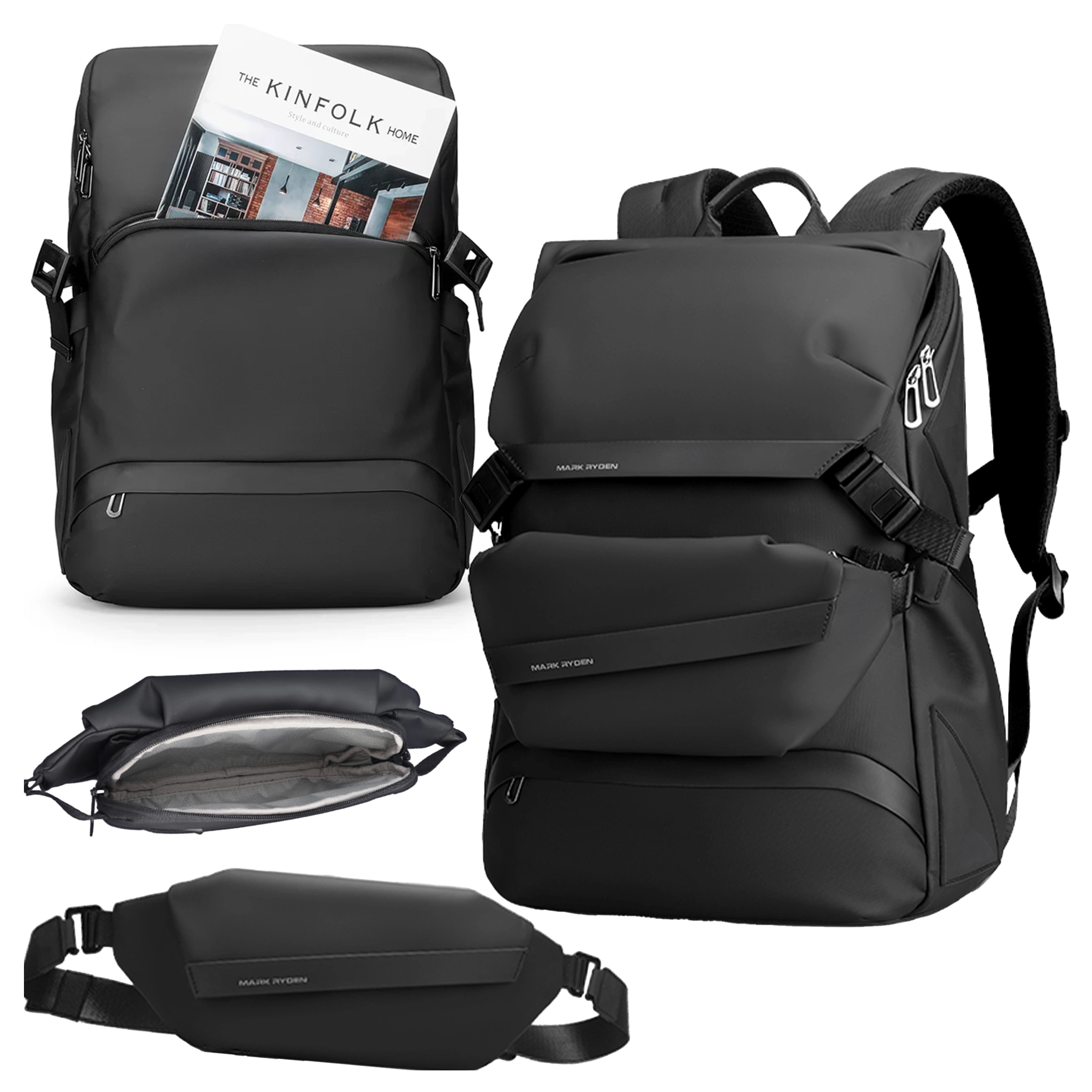 Plecak z Odpinaną Nerką 2w1 Mark Ryden, Bagaż Podręczny, Bezpłatny, Wodoodporny 18L, Z Kieszenią na Laptopa 15.6", Saszetka, Miejski, Podróżny 40x30x14 cm – Czarny x 1