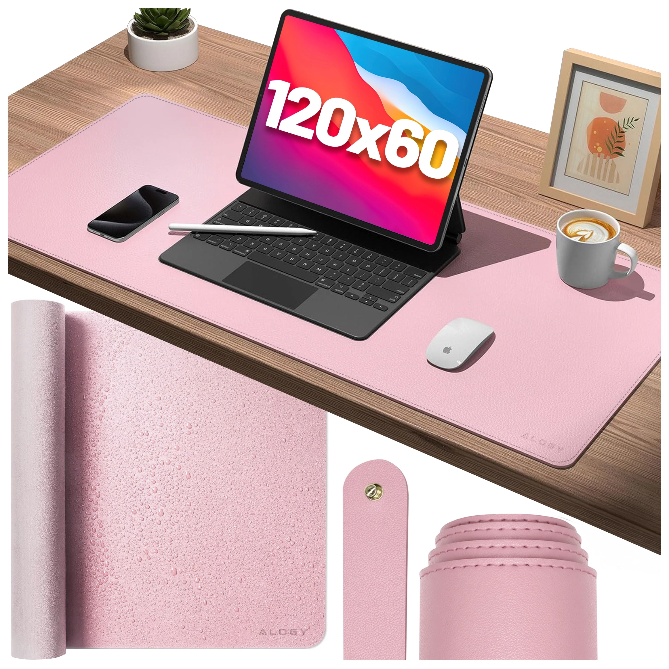 Podkładka na biurko 120×60 cm – antypoślizgowa mata ochronna z eleganckiej ekoskóry PU, pod mysz i klawiaturę, stylowa i trwała – Alogy WorkMat™ Różowa x 1