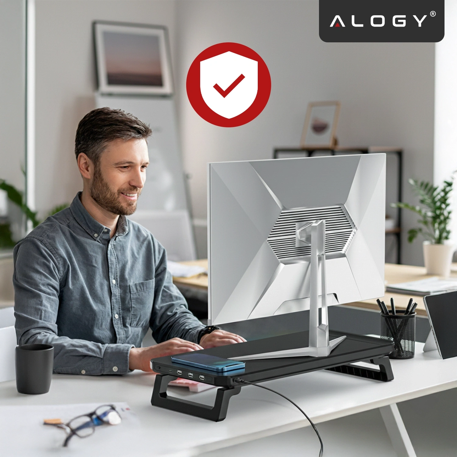 Podstawka Alogy to doskonałe rozwiązanie, które poprawia komfort pracy i zapewnia odpowiednią wysokość monitora, niezależnie od tego, czy pracujesz w biurze, w domu czy korzystasz z przestrzeni gamingowej. Dzięki solidnej konstrukcji i wytrzymałości do 25 kg, jest to idealny wybór dla każdego, kto ceni ergonomię i porządek.