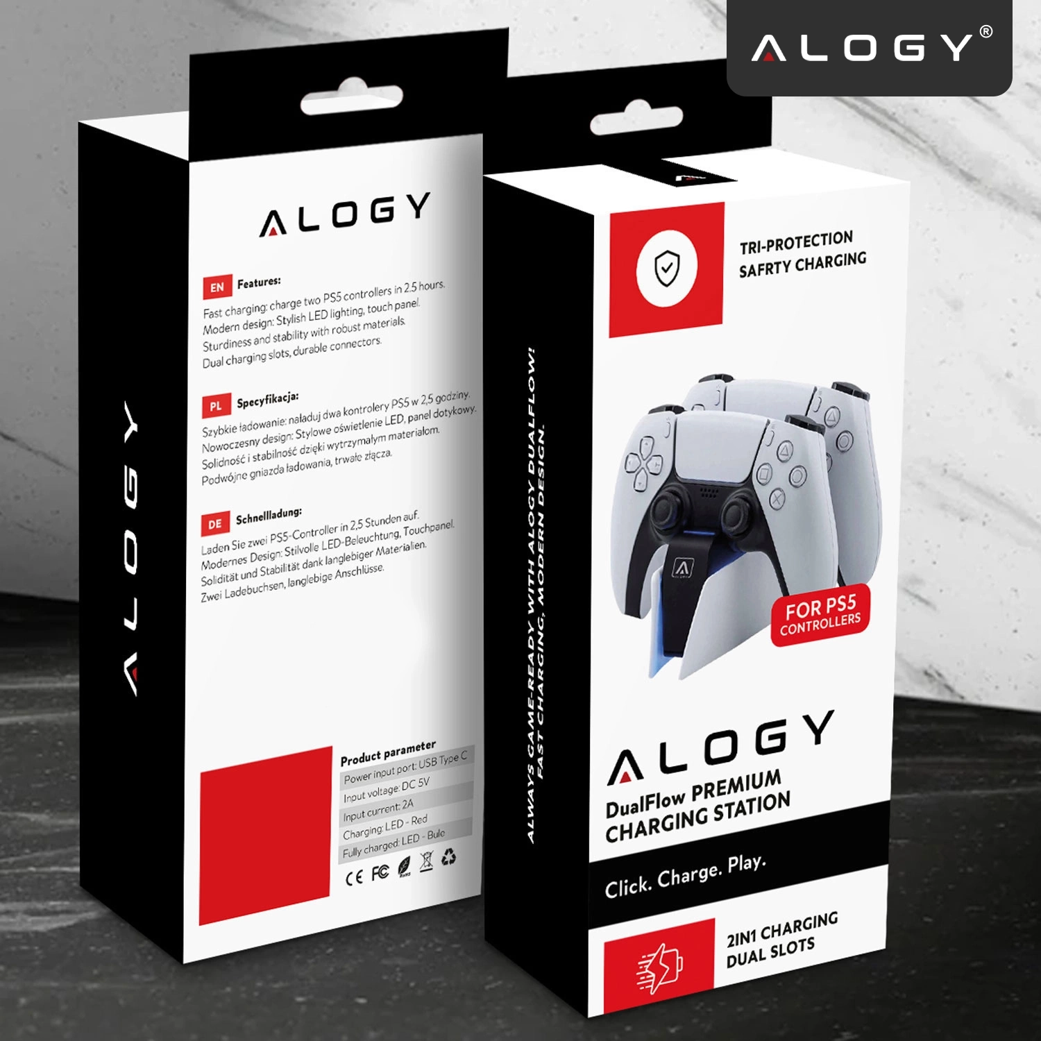 ⭐ Najnowszy model ⭐ Certyfikat CE, RoHS, FC ⭐ Bezpieczny system ChargeLock™ ⭐ Wskaźniki LED stanu ładowania ⭐ Obsługa 2 padów PS5 jednocześnie ⭐ Złącze USB-C ⭐ Plug&Play – bez instalacji ⭐ Antypoślizgowa podstawa⭐10 lat doświadczenia w branży ⭐ ponad 50.000 zadowolonych klientów marki Alogy ⭐