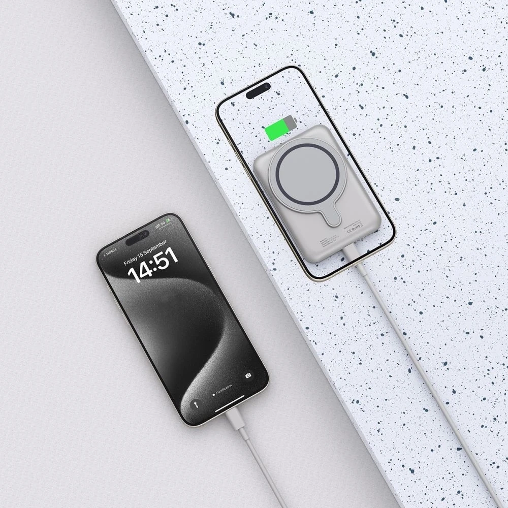 Kompaktowy powerbank PB10 LifeMag 15W o pojemności 5000mAh z funkcją magnetyczną MagSafe.