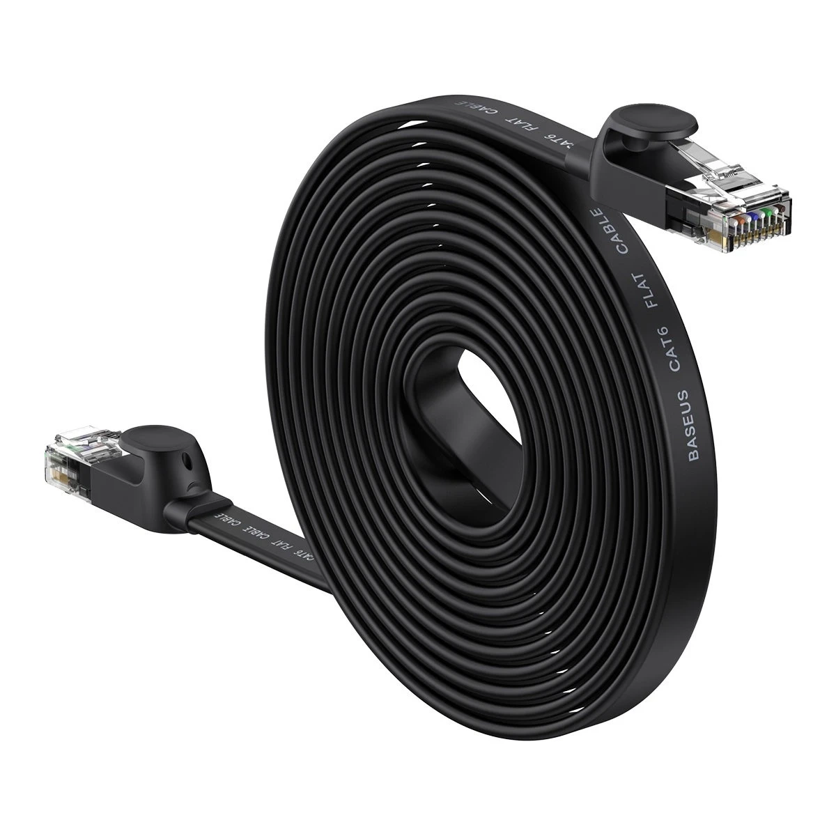 Przewód Baseus Speed Six kabel sieciowy płaski RJ45 1000Mbps 15m czarny (WKJS000301) x 1