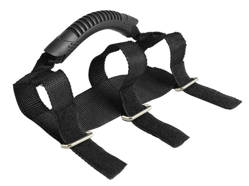 Rączka posiada 3 paski z rzepami i klamrami wykonanymi z metalu. Aby zamontować uchwyt na hulajnodze, wystarczy przełożyć pasek przez ramę i zapiąć na rzep. Paski po rozłożeniu mają długość 29 cm każdy, a szerokość każdego z nich to 2,5 cm. Sama rączka została usztywniona, idealnie leży w dłoni, nie sprawia dyskomfortu.
