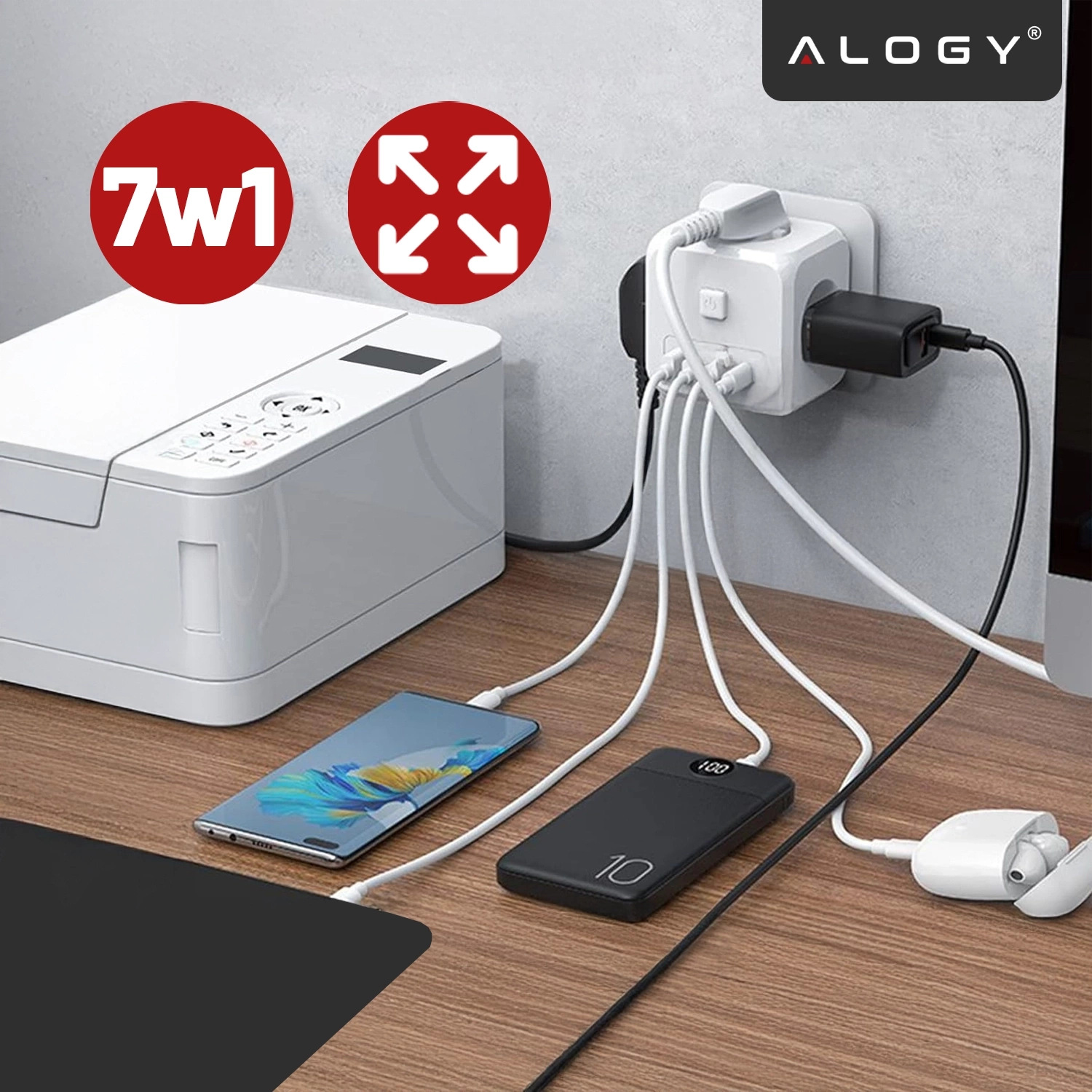 Rozgałęźnik sieciowy rozdzielacz Ładowarka adapter złodziejka 3 gniazdka EU 3x USB + USB-C C 7w1 Alogy Biały x 1
