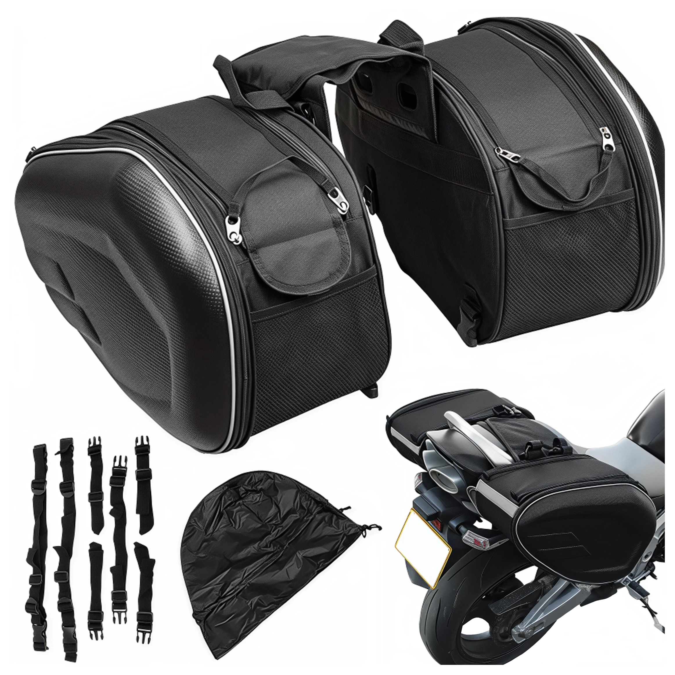 • Sakwy motocyklowe 2x19–29L, wodoodporne, z karbonowymi bokami i usztywnieniem. Łatwy montaż bez stelaża. Pojemność łącznie aż 58L – zmieścisz kask, odzież i więcej. Idealne na długie trasy, zakupy czy codzienną jazdę. Trwałe, stylowe i funkcjonalne.