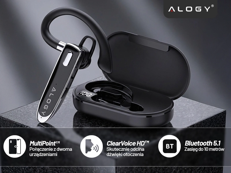 ▶️ Bezprzewodowa Słuchawka Alogy DriveTalk™ BT 5.1 MultiPoint do Rozmów + Etui LED
